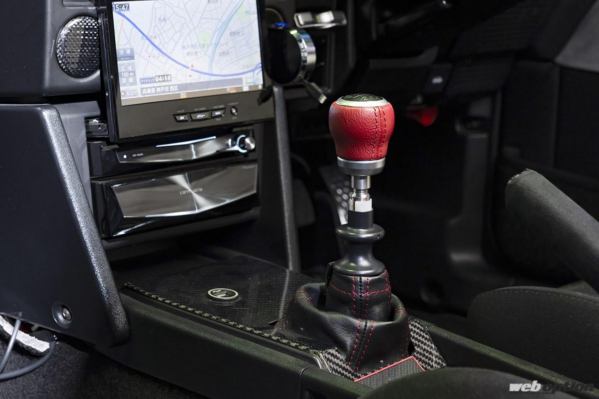 斜め手前に傾斜しているAE86のシフトレバーに対し、ZN6/ZC6のシフトレバーは直立。拳ひとつ分だけシフト位置は低くなるが違和感はなく、バケットシート等でドラポジを低くしていればベストポジションになる。オプションのカーボンシフトパネルとブーツを投入すれば、後付け感も皆無だ。