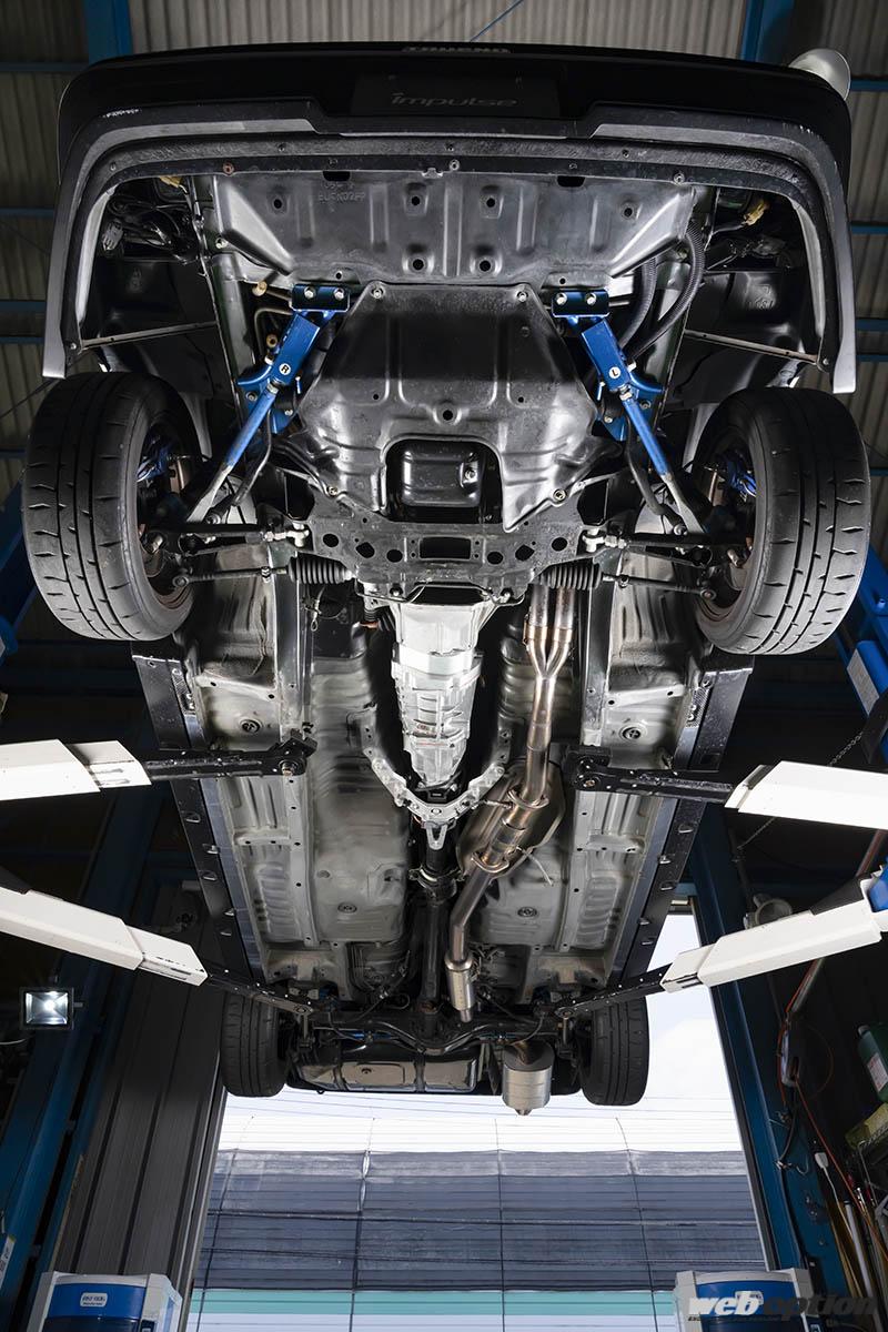 ミッションスワップにあたって必要となるボディ加工は、シフトレバー部にわずかな切り込みを入れる程度。純正ミッションにコンディション不安を抱えているならインパルスが用意した6速MT換装のコンプリートメニューを迷わずオーダーするべきだ。