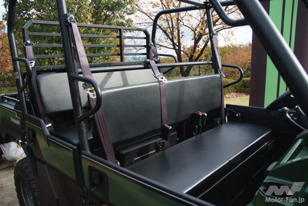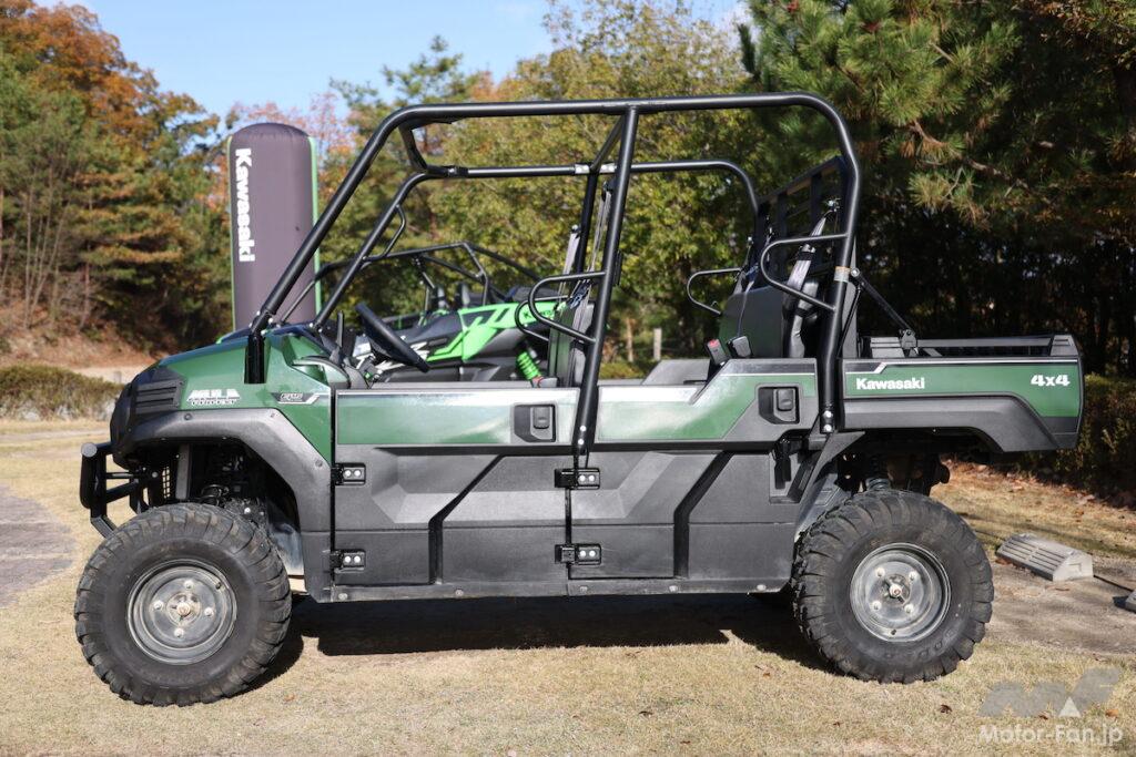 実はすでにMULE PROが災害救助用や自衛隊用に官公庁に納入されており、この場合は特例として大型特殊としてのナンバー取得と公道走行が可能になっている。しかし、これについてはカワサキモータースジャパンでの厳しい審査もあり、個人ユースではほぼ不可能となっている。