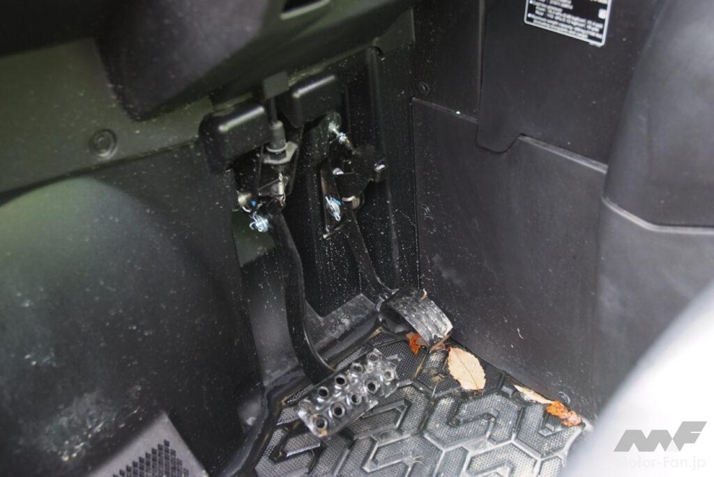 ペダルは吊り下げ式だが、ほぼ上から踏むようなペダル配置となっている。ペダルはやや小さめで、フットレストがその分大きいものの、フットスペースは意外と狭く感じられる。