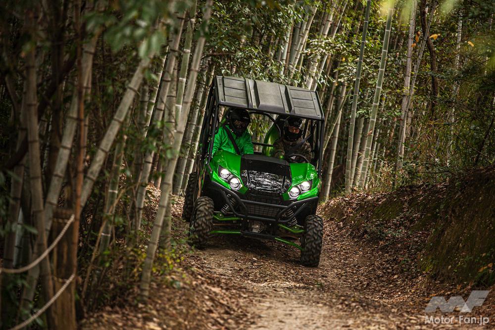 KRX 1000のようなハードなスポーツライドではないが、仲間とトレッキング感覚でオフロードを楽しむにはちょうど良いモデルだ。今回の試乗コースであるさなげアドベンチャーフィールドのようなオフロードコースはもちろん、あるいはこの走破性であればスキー場の夏季ゲレンデを走ったり、冬季のスノーライドも面白いかもしれない。
