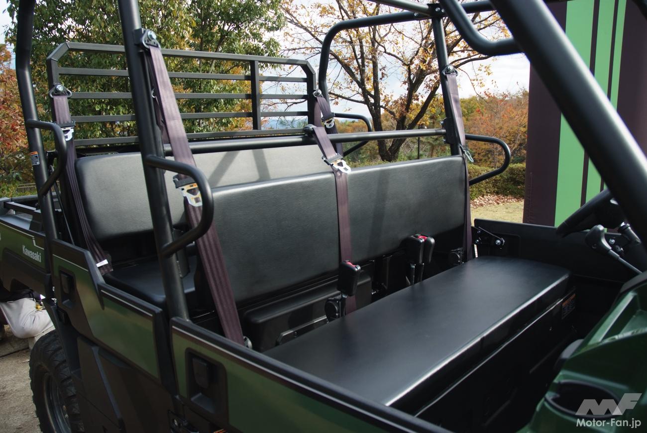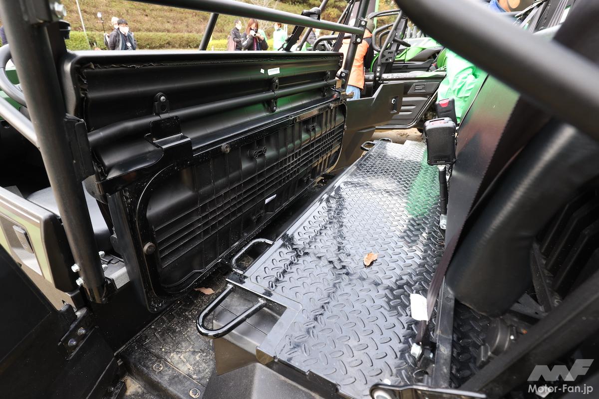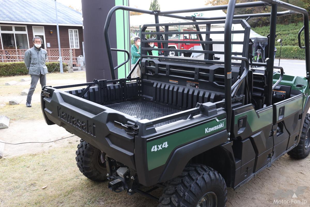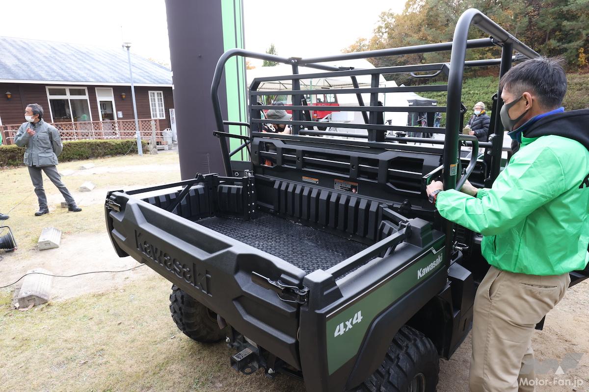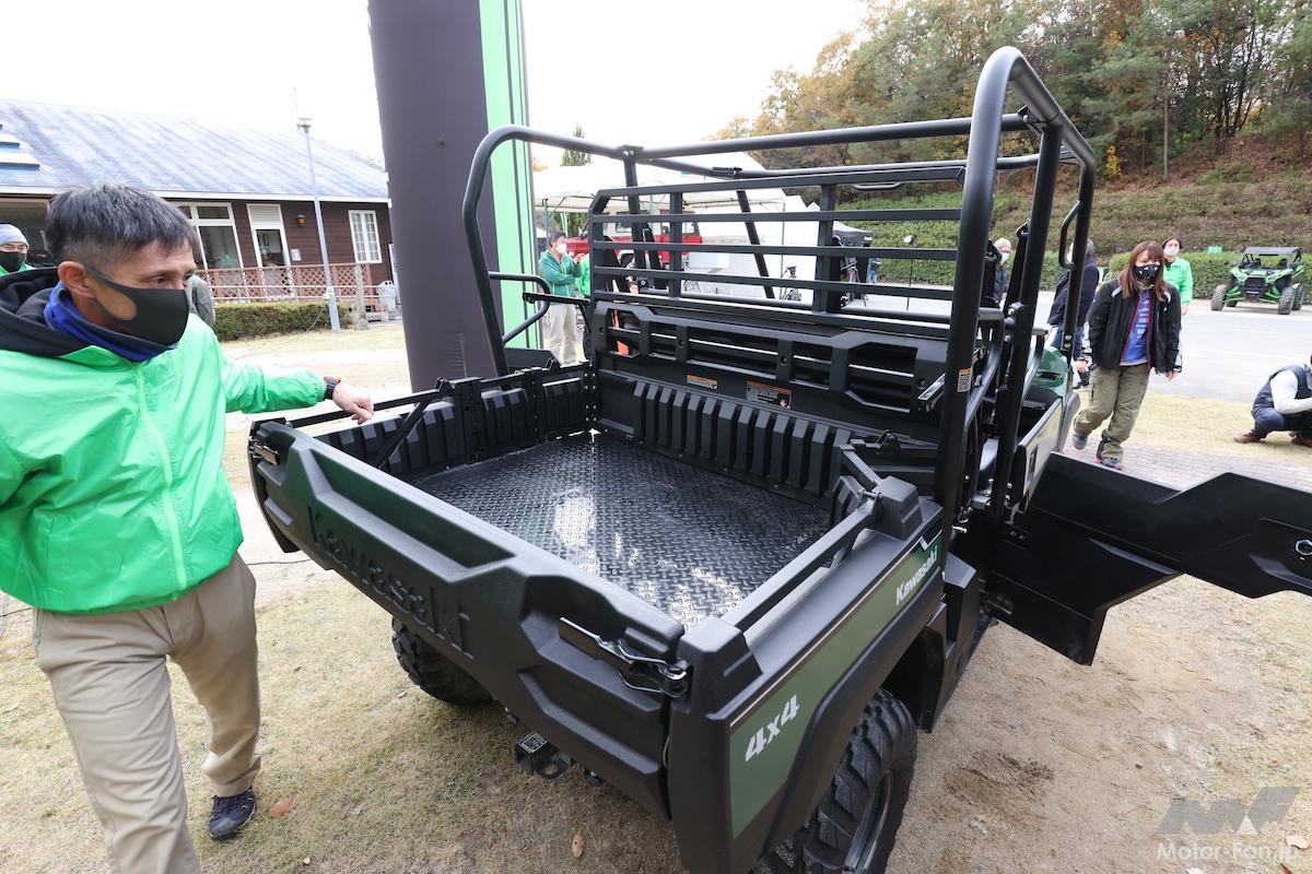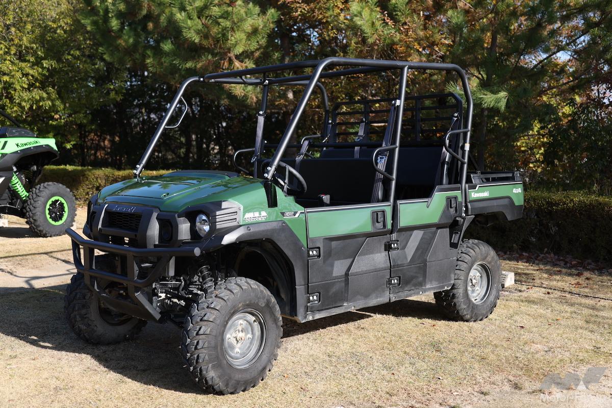 実はすでにMULE PROが災害救助用や自衛隊用に官公庁に納入されており、この場合は特例として大型特殊としてのナンバー取得と公道走行が可能になっている。しかし、これについてはカワサキモータースジャパンでの厳しい審査もあり、個人ユースではほぼ不可能となっている。