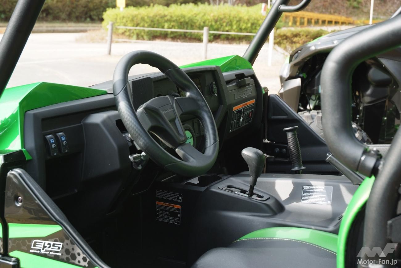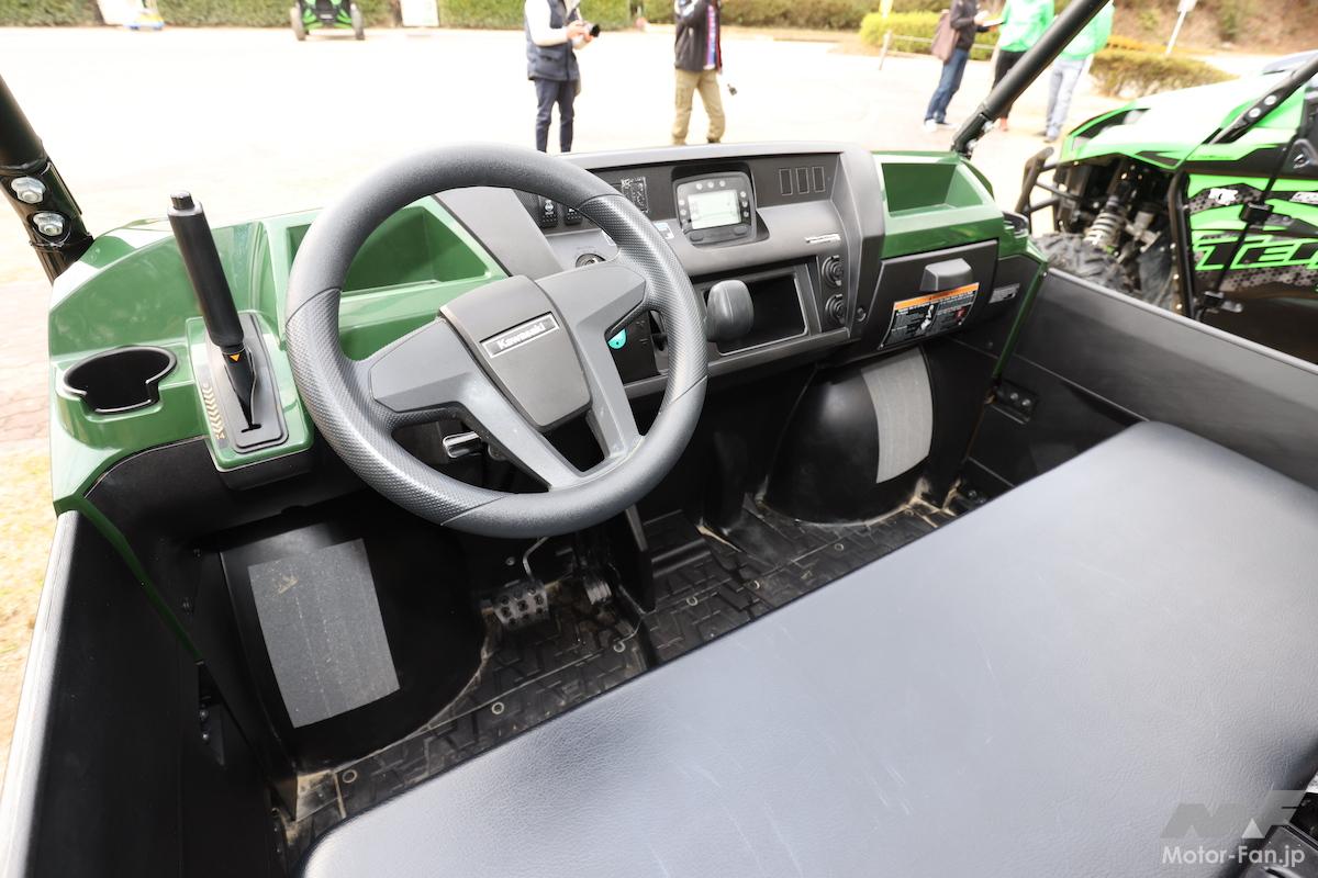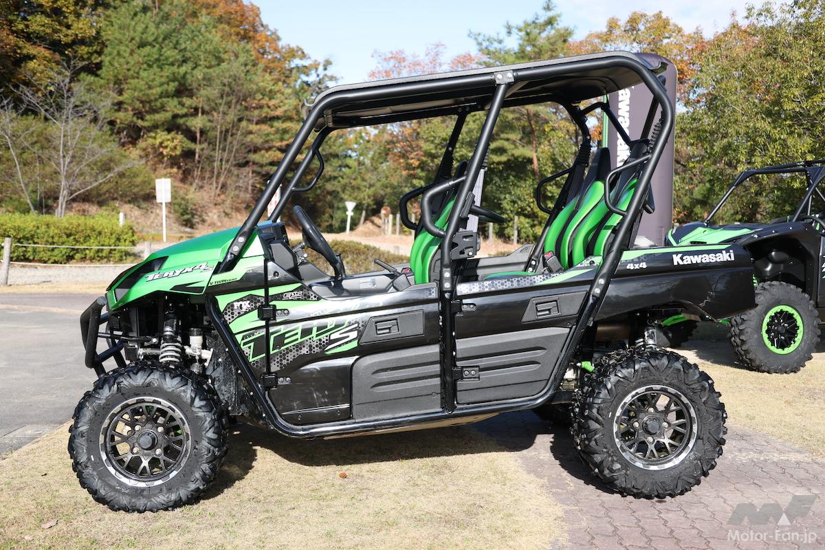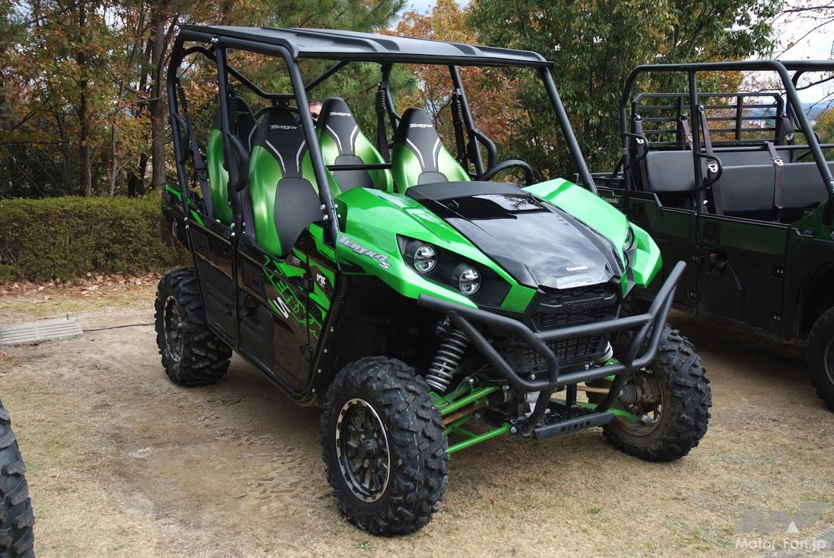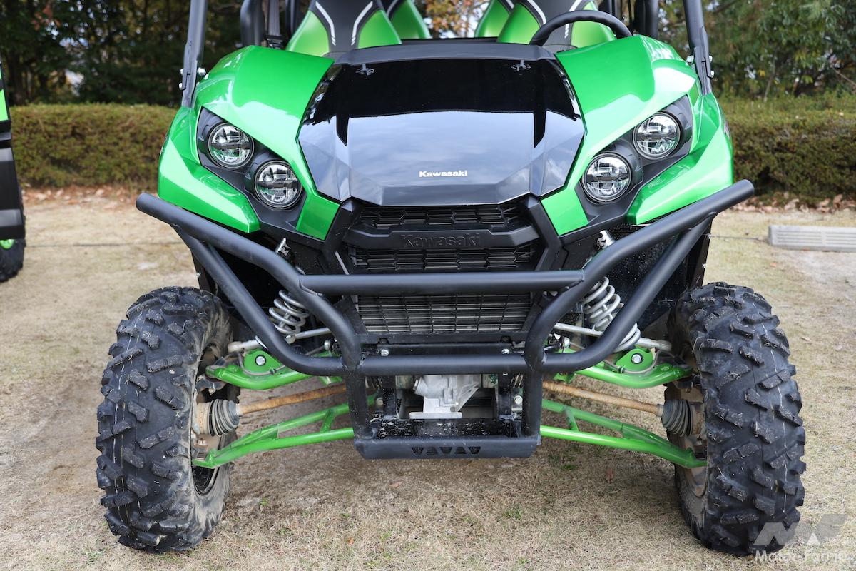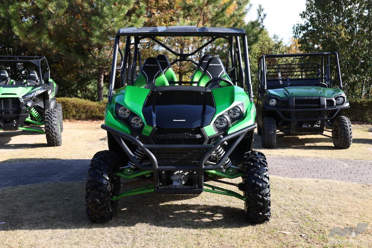 しかし今回、カワサキモータースジャパンが正規販売するのは、ハンドルとペダルを備え複数名乗車が可能な”クルマ”で、アメリカを中心に人気の小型”オフロードバギー”だ。