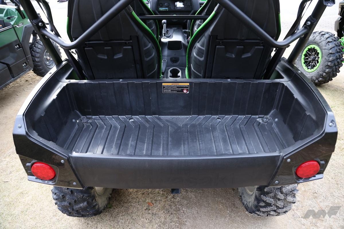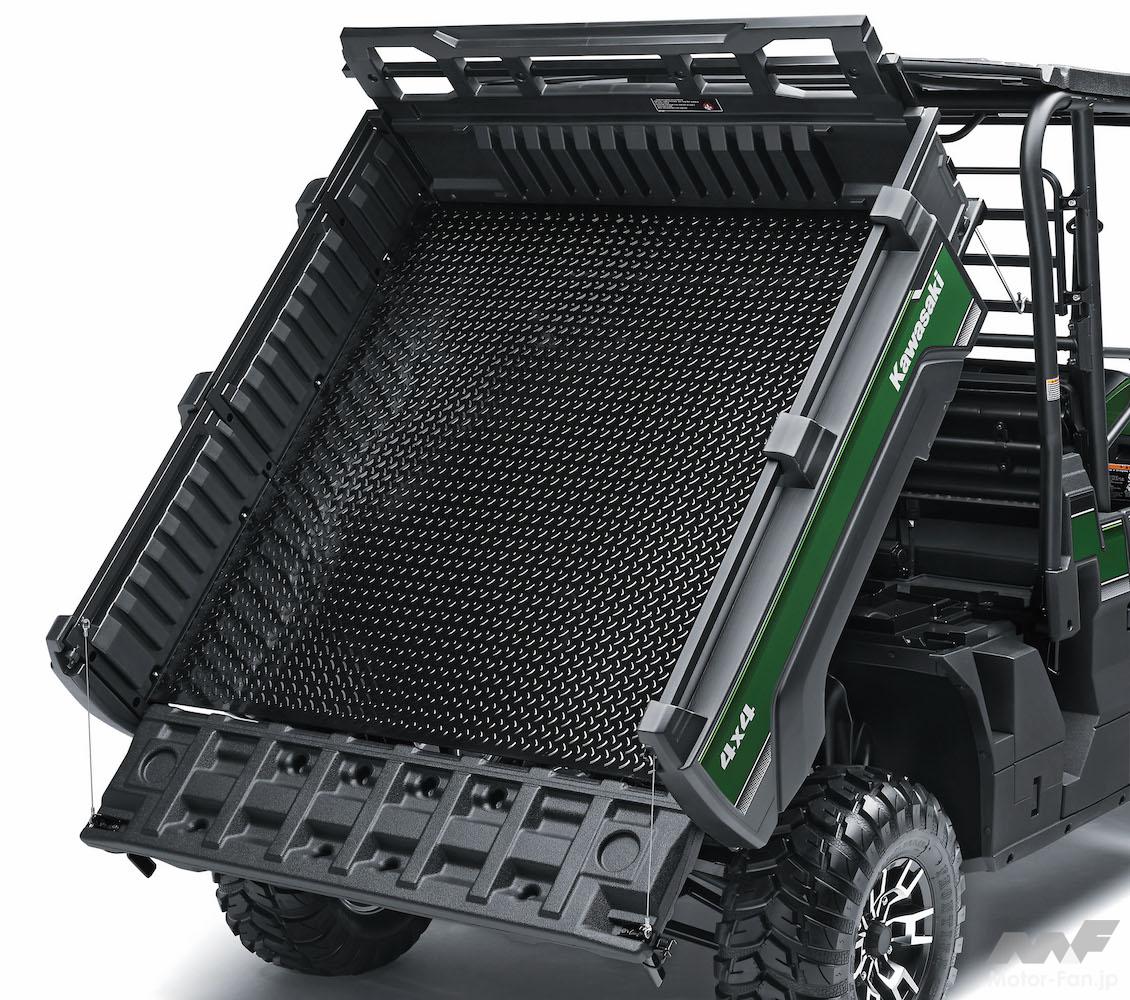 荷台の積載量は「MULE PRO-FXT EPS」の3名乗車時と同様の453kgとなっている。また、こちらの荷台はホイスト機構を備え、ダンプのように持ち上げることができるのが大きな違いだ。