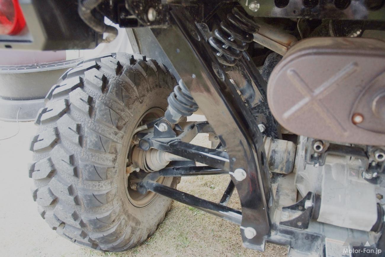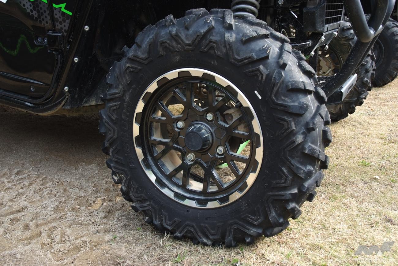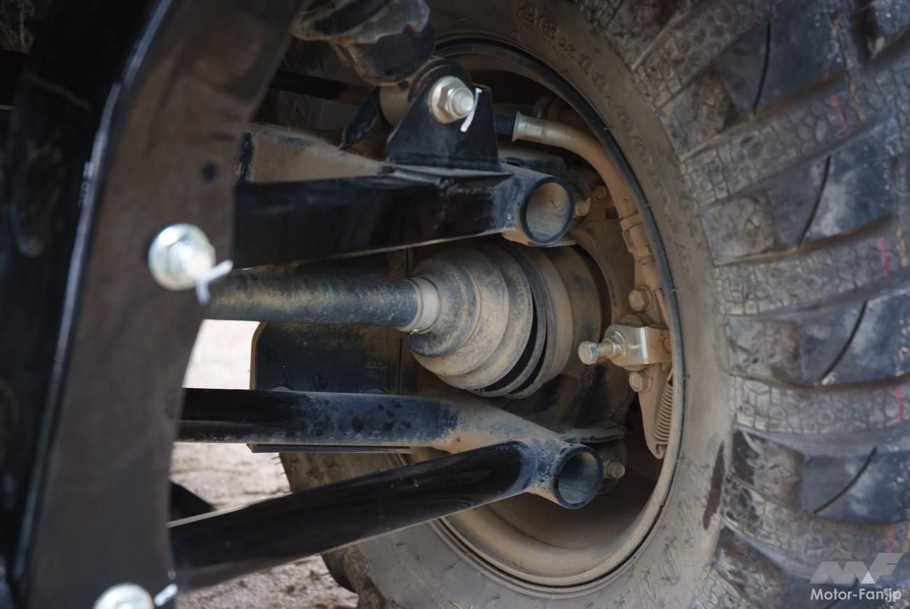 タイヤはフロントが27×9R14 6PRサイズで、リヤが27×11R14 6PRサイズと、リヤが若干太くなっている。リヤデフロックと合わせてリヤのトラクション性能を重視したセットだ。ホイールは前後とも14インチとなる。撮影車両のタイヤはMAXXIS(マキシス)のBIGHORN 2.0を装着していた。