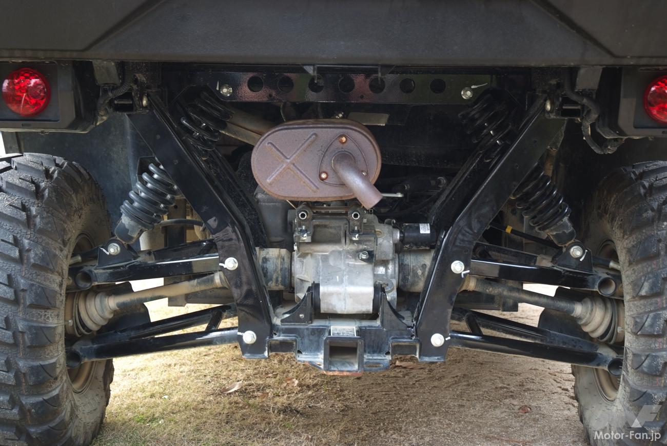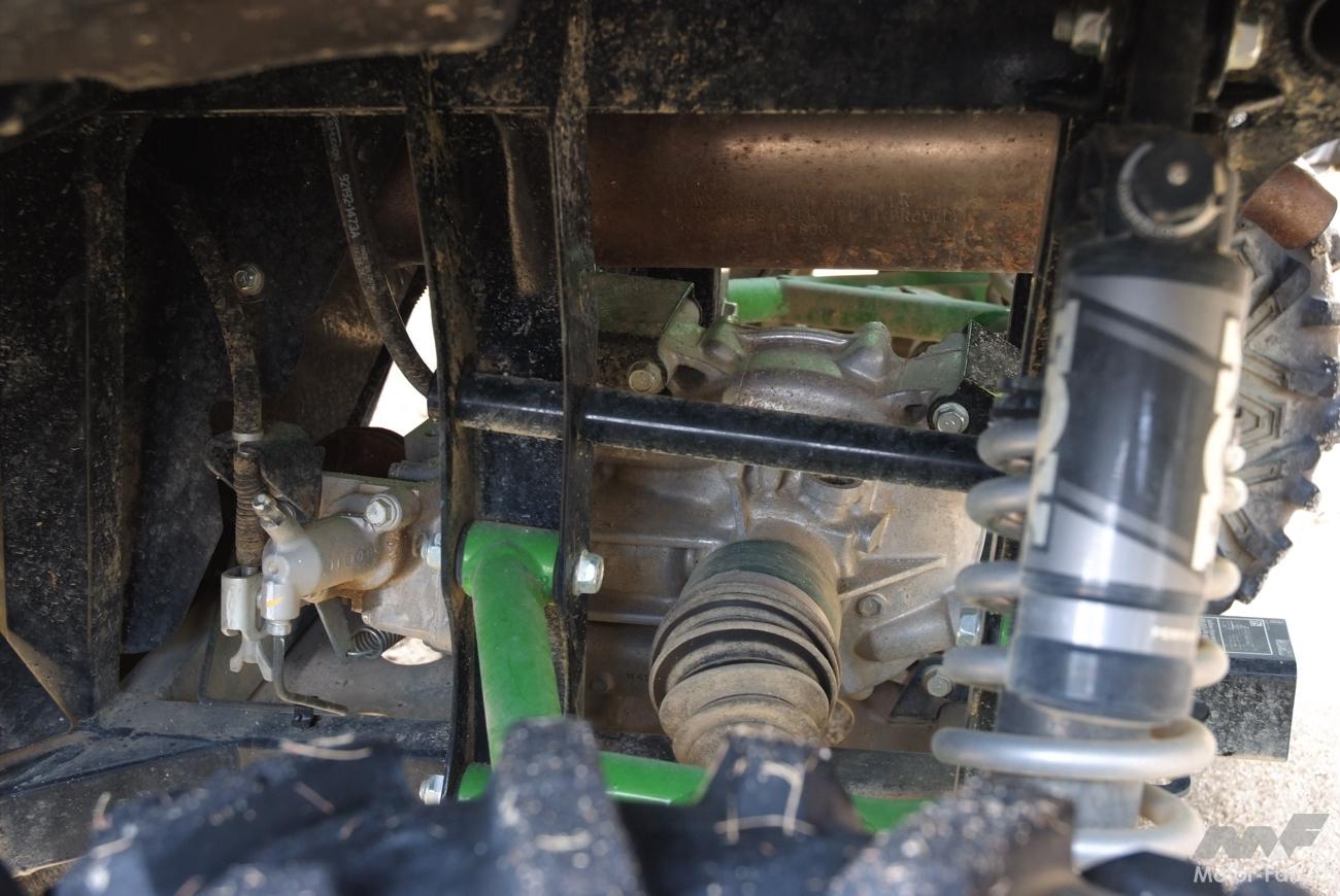 リヤミッドシップで荷台も高いKRX 1000と違い、エンジンとミッションはより中央に寄せられているため本体は覗き見ることはできない。