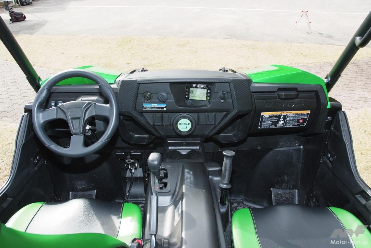 一転、こちらは完全な実用車。ドライビングプレジャーよりも人と荷物を乗せて運ぶことが主目的だ。3気筒エンジンもVツインのTERYX4 Sよりは鼓動感は抑えめで、車体の挙動もマイルドに感じる。