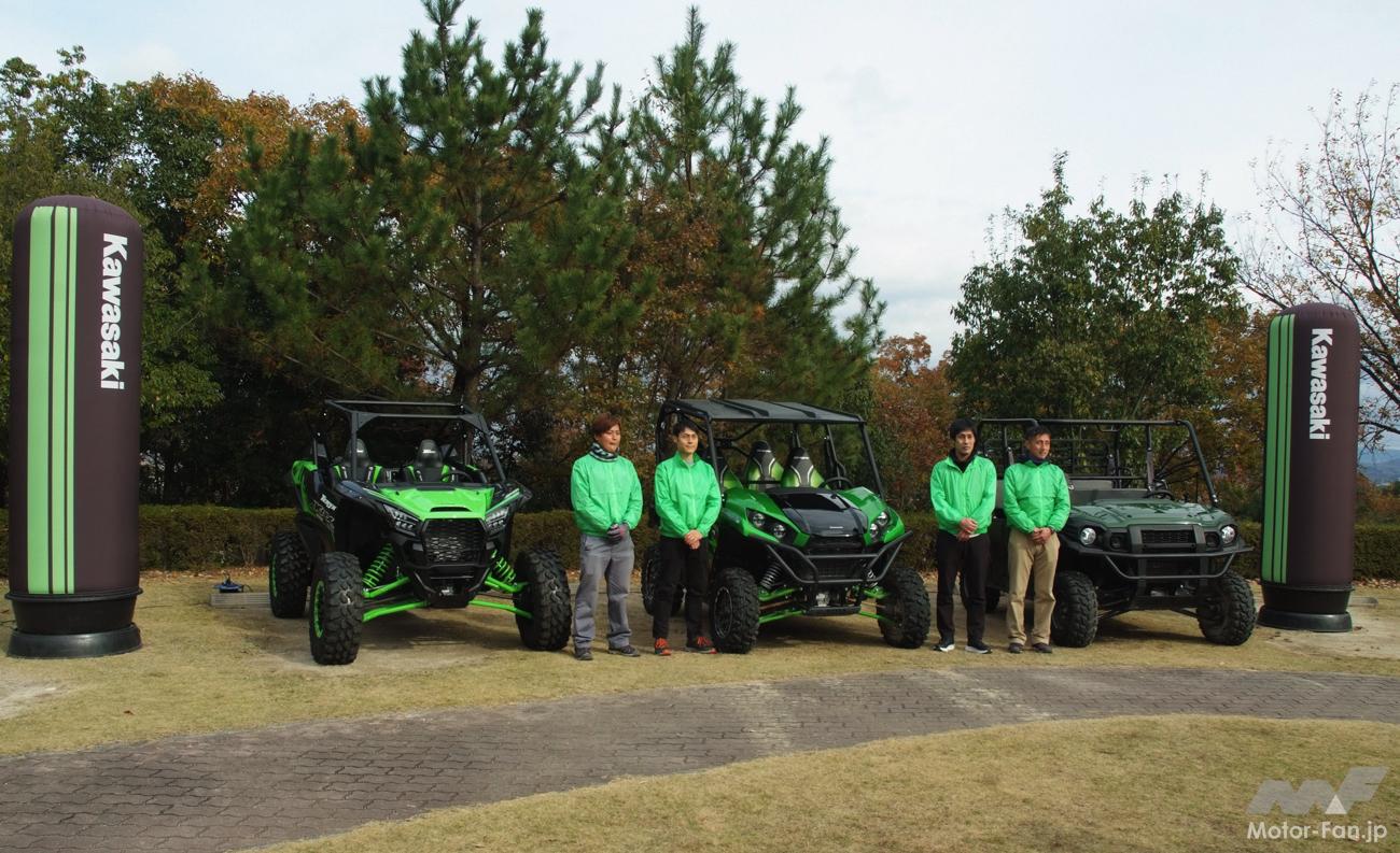 カワサキモータースジャパンは2022年12月7日に愛知県豊田市のオフロードコース「さなげアドベンチャーフィールド」で今回日本で販売する3車種4モデルの発表試乗会を実施。