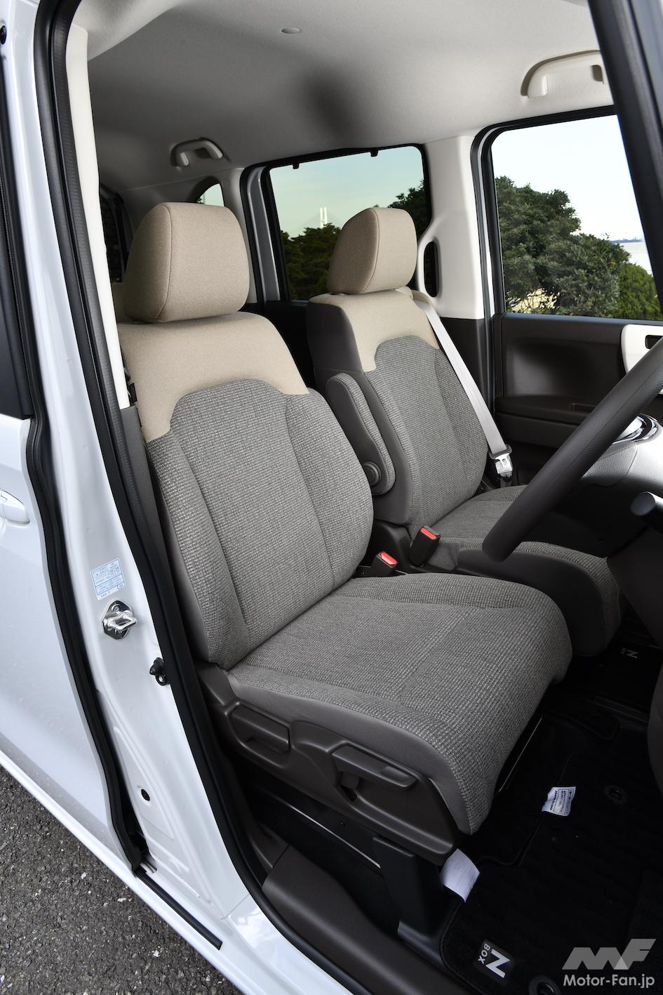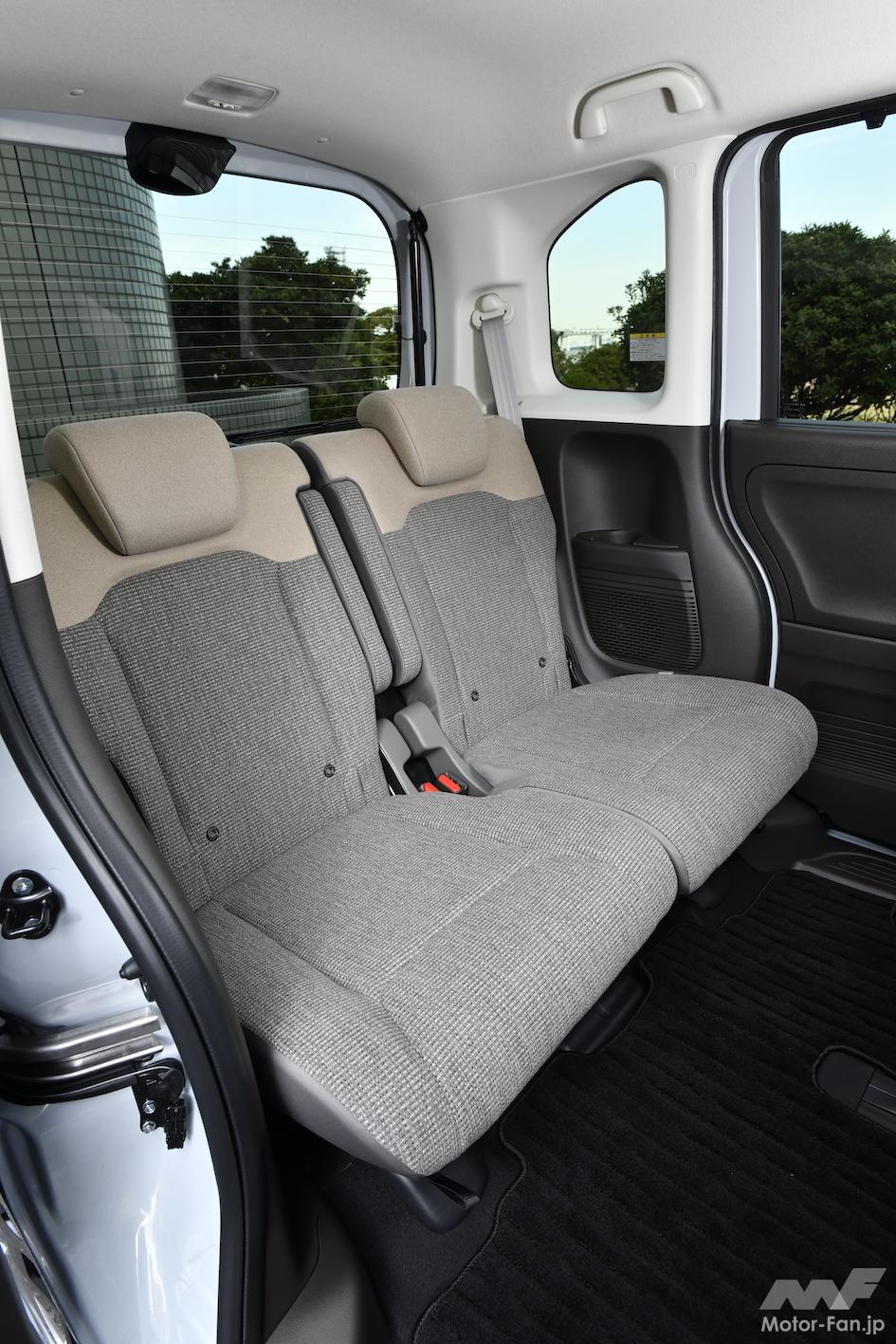 ちなみに試乗車の装着タイヤは、ダンロップのエナセーブEC300。サイズは155/65R14で、指定空気圧は前240kPa/後230kPa。車重を考えると空気圧は少し高めに思えるが、そこは燃費(転がり抵抗)とトレードオフだから仕方ない。