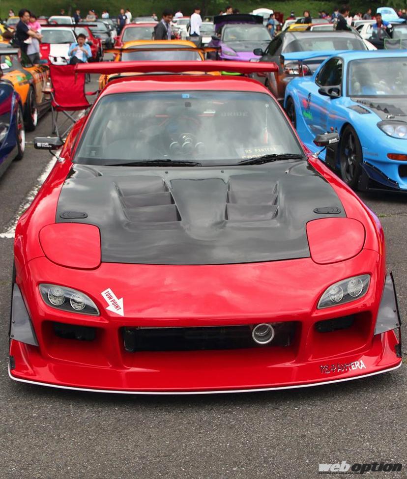 走りの雰囲気がプンプンと漂う深紅の4型FD3S。オーナーの“ヒロセブン”さんは、免許取得直後にFC3Sを購入し、その後は3台のFD3Sを乗り継いでいる生粋のセブン&ロータリーフリークだ。