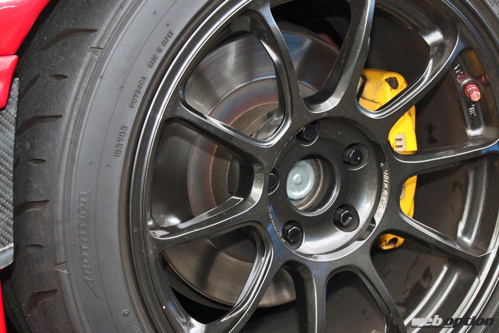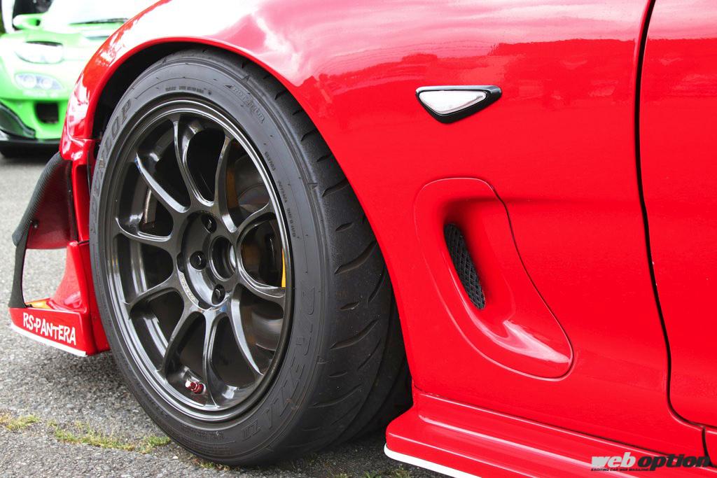“街乗りもできるサーキット仕様”をコンセプトにしているこのFD3S。そのための拘りは、ホイール&タイヤ選択にも現れている。