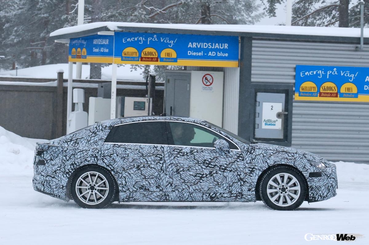 今回の写真はスウェーデンで行われた冬季テスト中に撮影されたもので、雪道を走行する新型のプロトタイプが捉えられている。ルーフのなだらかな傾斜と、そこに続くリヤガラスからトランクリッドまでのラインが非常に滑らかなのが印象的だ。開発の初期段階のため、大部分はカモフラージュ模様やフェイクパーツで偽装されており、スタイリングの詳細を見ることは難しい。