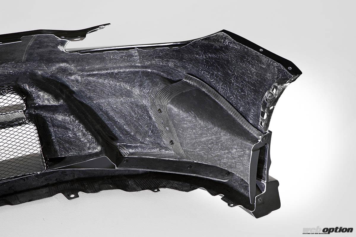また、バンパーの左右開口部にセットされたエアガイドも注目ポイント。裏側から見た画像で確認できるが、フレッシュエアを効率良く取り込めるように、別ピースの凝った立体的構造となっているのだ。