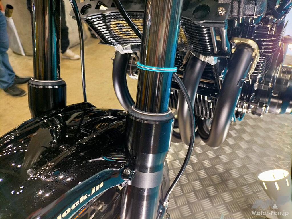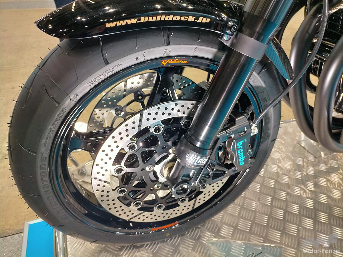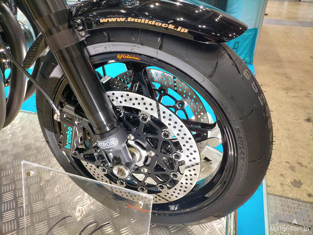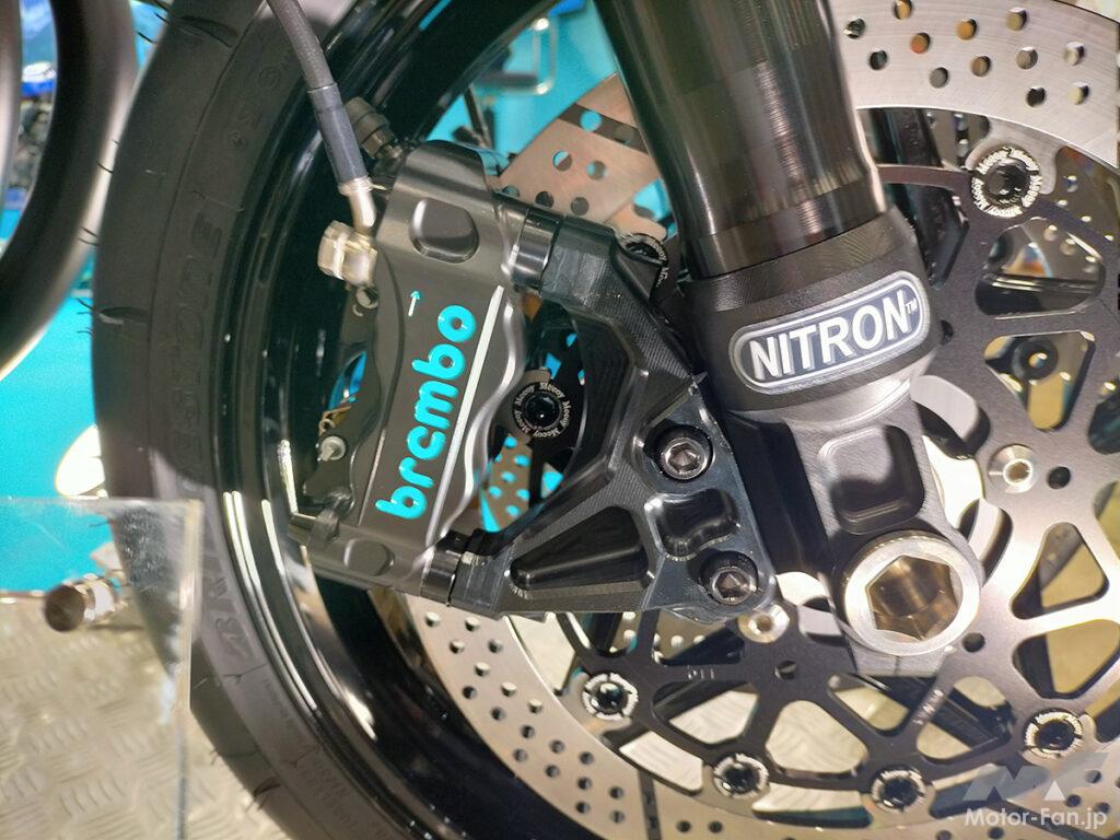 フロントの倒立型フォークと、リザーブタンク付きのツイン型リアショックは、「ナイトロンのサスペンションは、車両に合わせて自由にチューニングできるのがポイント(ブルドックの和久井社長)」という理由からナイトロン製をチョイス。