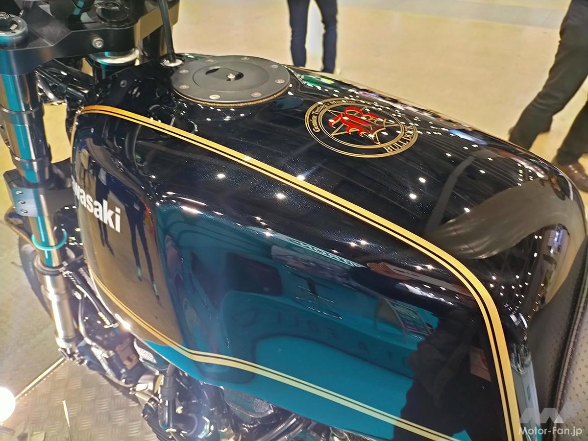 プロデュースしたのは、カワサキZ系などビッグバイクカスタムの大御所「BULL DOCK(ブルドック/栃木県足利市)」。オーナーでありカスタムの依頼者は、ワイドショーのコメンテーターやラジオDJなどで活躍し、部類のクルマ&バイク好きとしても有名なタレントのユージ氏。ユージ氏のカワサキZ1000MKⅡへの熱くて深い思い入れを見事に具現化したのが、このカスタムだ。
