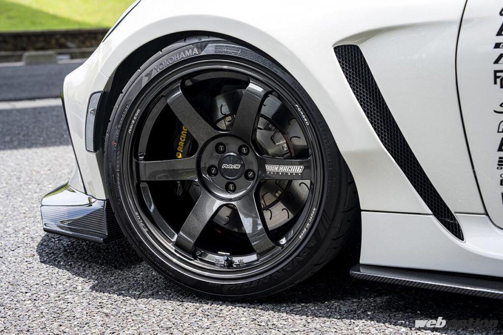 GR86をいかに美しく魅せるか、そこに拘ってデザインされたボディキットのため市販品でジャストサイズのホイールが無かったという中嶋さん。そこでレイズにボルクレーシングTE37 S-PLUSの特注サイズ(11J+24×18インチ)をオーダー。定期的に発注をかけているそうで、10万6000円にてボルテックスオリジナルサイズとして取扱中だ。