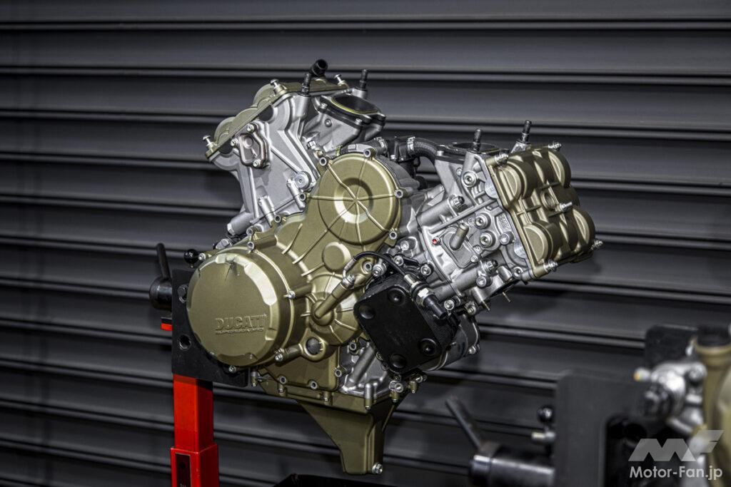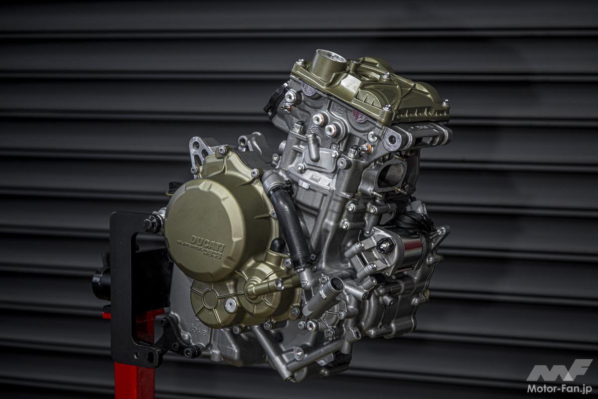 「スーパークワドロモノ」は新開発ではあるが、ベースのエンジンが存在する。それが「1299パニガーレ」が搭載するVツイン「スーパークワドロ」である。「1299パニガーレ」は生粋のレーサー。その構造を引き継ぐ「スーパークワドロモノ」にもレーシングモデルの特徴が見て取れる。