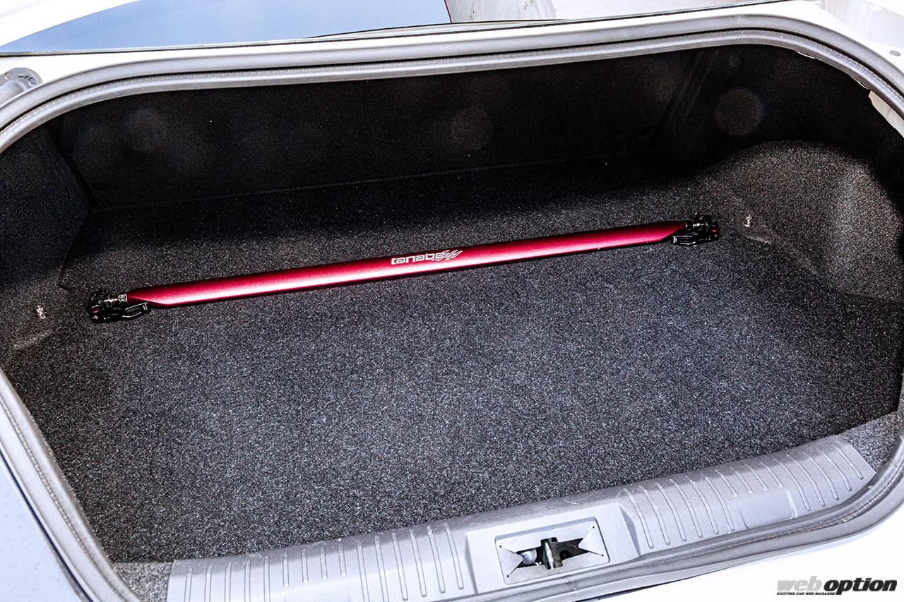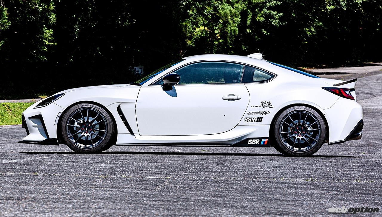 車高設定は前後ノーマル比マイナス20mmの推奨値に対し、前後マイナス30mmとしたスポーツ向けのセッティング。ホイール&タイヤはSSR GTX04(F8.5J×18+44 R9.0J×18+52)にダンロップディレッツァZIII(前後235/40)の組み合わせだ。