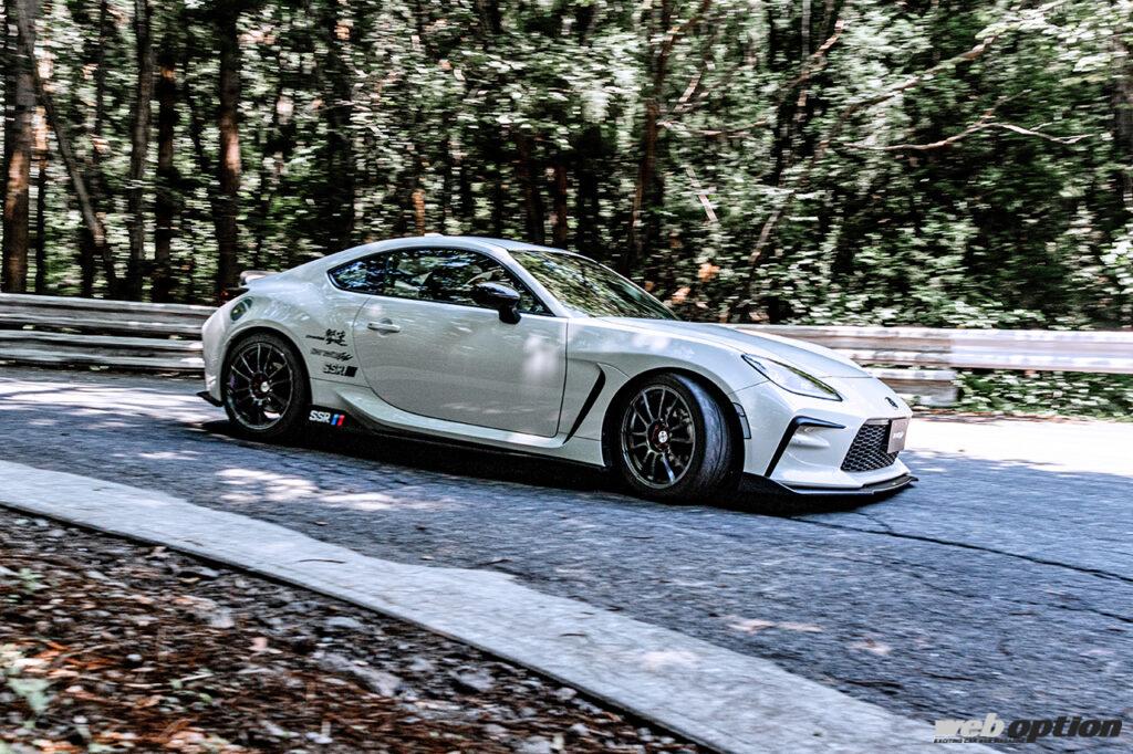 そんなタナベの最新スペックでフル武装したGR86を走らせたターザン山田は、「何と言っても走るのが楽しい! リヤの安定感をしっかりと確保した上で、操舵に対してコントロールに余裕がある傾向は、はっきり言って俺の好みにピッタリの味付け。こういうサスだと、峠のような狭いコースではガードレールまでの距離が掴みやすいので、安心して攻められるわけ。まさにファントゥライドって感じで、FRマシンを操る面白さが味わえるスポーツサスだよ」と、満面の笑みを浮かべながら大絶賛。