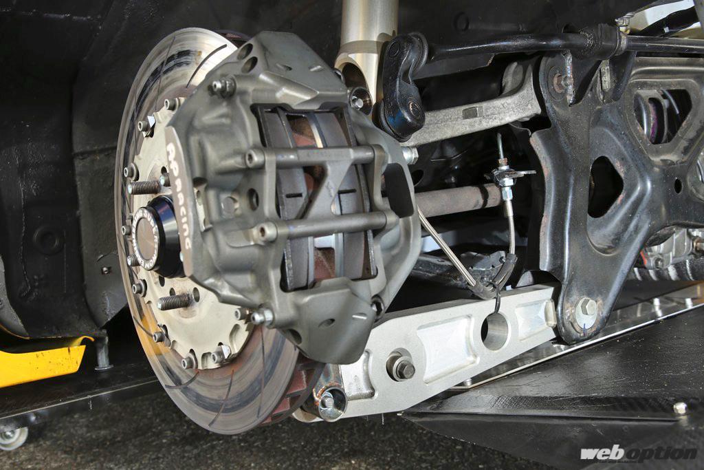 リヤサスは、レーシングアップライトやスーパーナウのロングロワアームを組み合わせてトレッドを拡大。強度アップとともにジオメトリーの最適化を行っている。駆動系は、ATSカーボンクラッチ→クワイフ6速シーケンシャルドグミッション→OS技研スーパーロックLSDという構成だ。