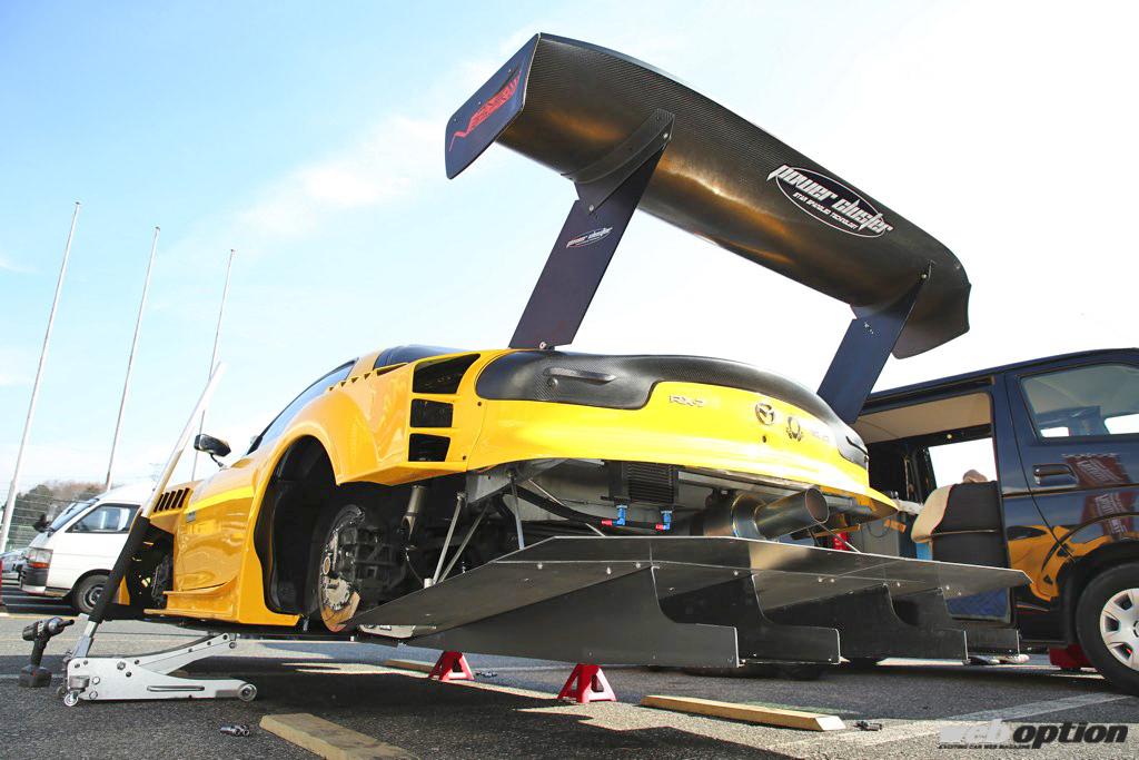 2019年シーズンで導入したドライカーボン製アンダーパネルは、フルドライカーボンによる逸品。リヤセクションの空力パーツと合わせて、圧倒的なダウンフォースを味方に付けながらFD3Sの旋回性能を高めていく狙いだ。