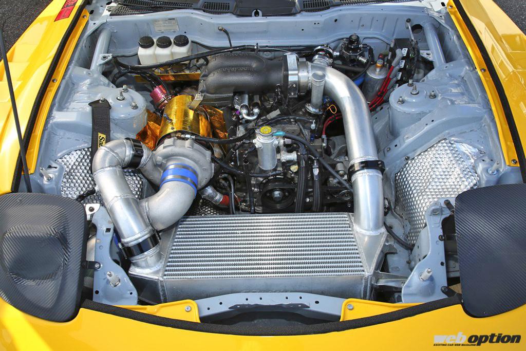 心臓部の13Bは、サイドポートにペリフェラルポートを組み合わせたクロスポート仕様とし、インテークマニホールドにアメリカのPRO-JAY製のキャストモデルを使用。スロットルもPRO-JAYのビッグタイプを組み合わせる。