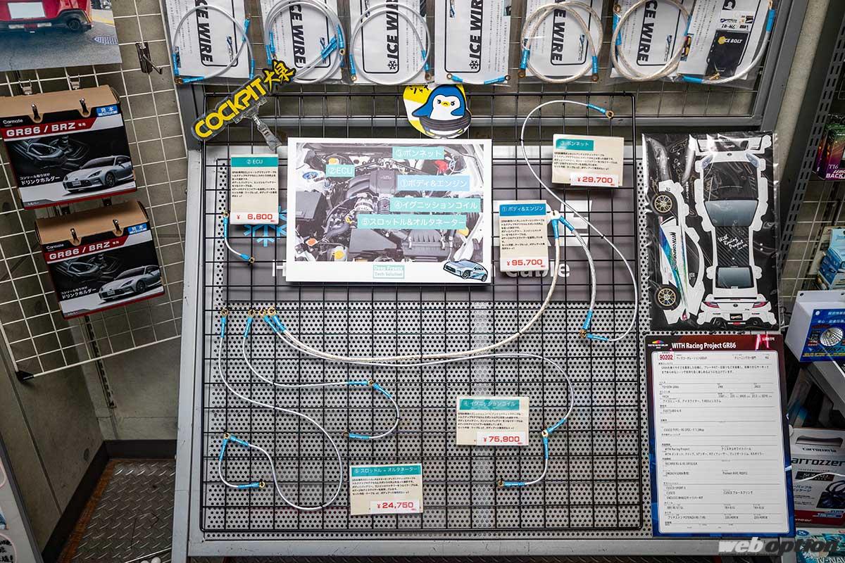 コクピット和光、コクピット大泉、タイヤ館石神井、タイヤ館高島平、タイヤ館東京EDOGAWAの5店舗で攻勢をかける“ウィズコーポレーション”。そんな同社が、プリウス、S660に続くオリジナルエアロシリーズ第3弾として東京オートサロン2023でデビューさせたのが、このGR86だ。