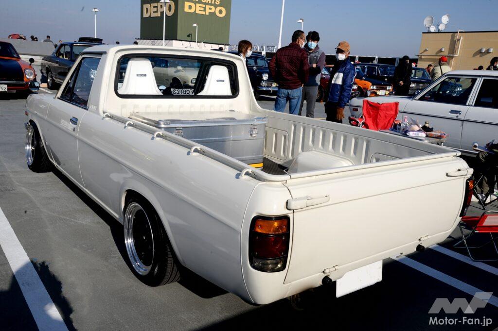 どんなクルマでも年式が新しいほど程度の良い個体が多く残っているものだが、サニートラックにしても同じことで角目2灯式になった最終モデルが数多く流通している。ただ、旧車イベントなどで見かけるサニートラックの多くが丸目2灯の古いタイプに思える。これは顔面を移植してあるからで、大きな変更を受けなかったから簡単に古いルックスへ変身させることが可能なのだ。