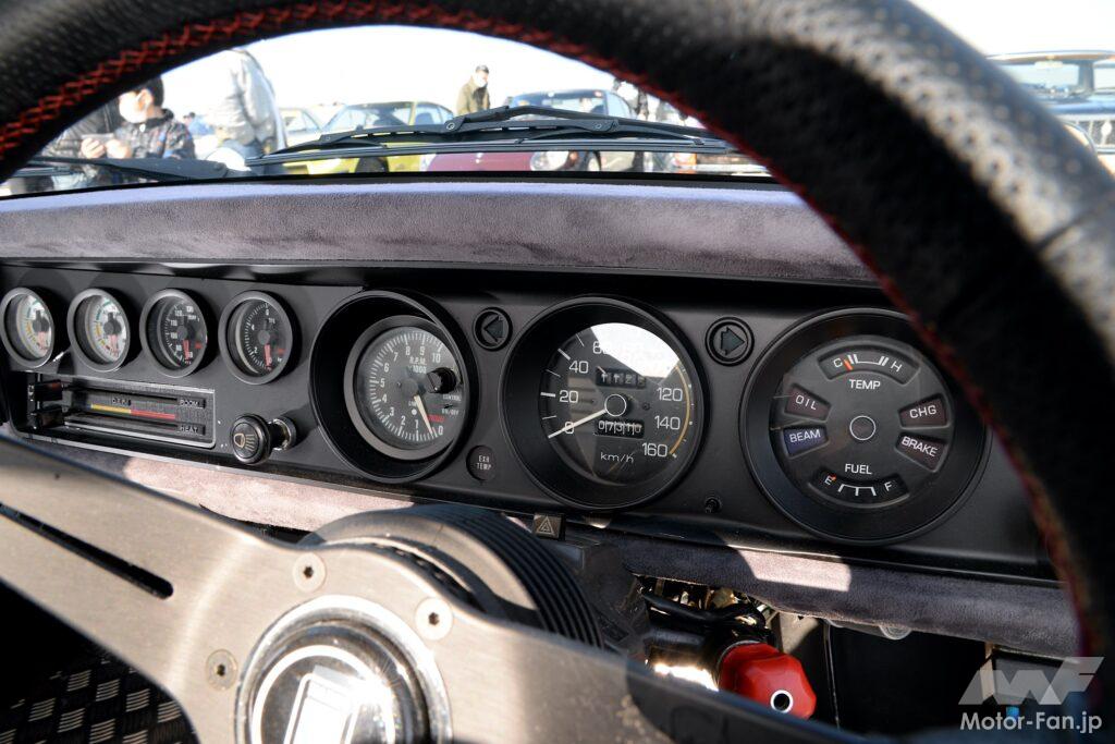 どうしても古いクルマの内装は紫外線などの影響により傷みが進行してしまう。特にダッシュボードが割れてしまう例は多く、直そうにも部品がないことは珍しくない。そこで中村さんはダッシュボード全面をアルカンターラの表皮で覆ってしまった。単に被せたのではなくしっかりと接着されているため、非常にまとまりの良い印象となっている。