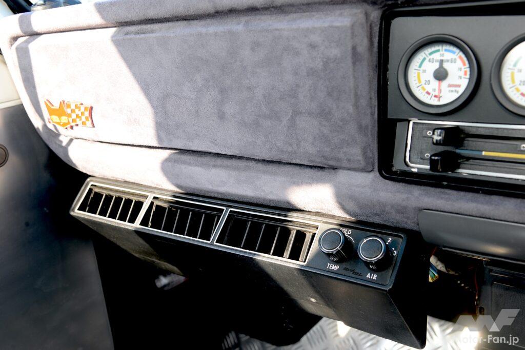 スポーツカーというよりGTカー的な味わいになるのだ。そこで中村さんはクーラーを装着してシーンを問わず乗り回せるようにした。板金塗装して鮮やかなホワイトとされたボディにトルクフルなエンジン、なおかつ真夏でも涼しい顔して運転できるクーラー付き。最終型サニトラならではの楽しみ方だろう。