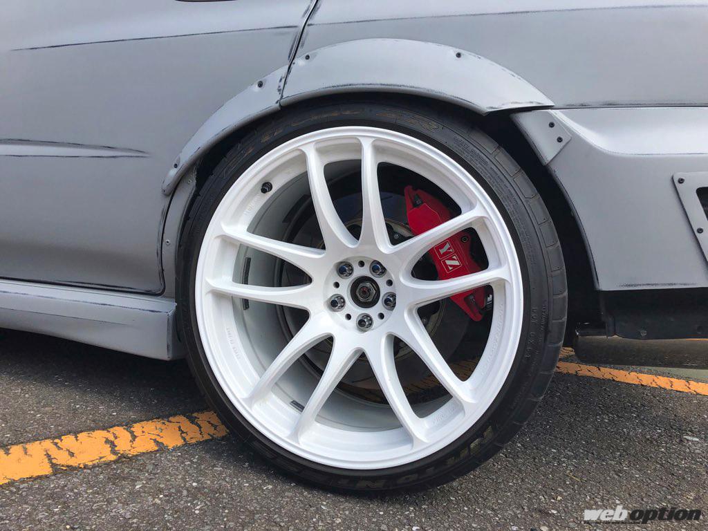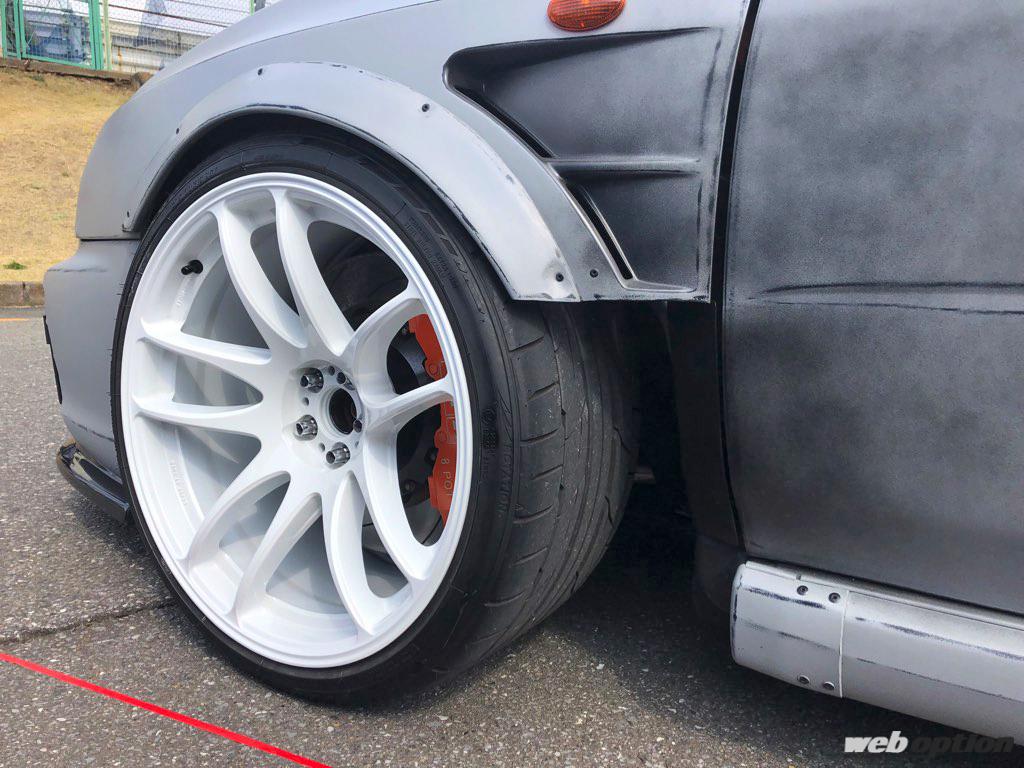 この状態で全切り&ジャンプしてもボディと干渉しないように、タイヤハウス内部はハンマリング&フレームカットで対策している。ブレーキもXYZのキット(F8ポット R4ポット)で強烈なストッピングパワーを手にした。