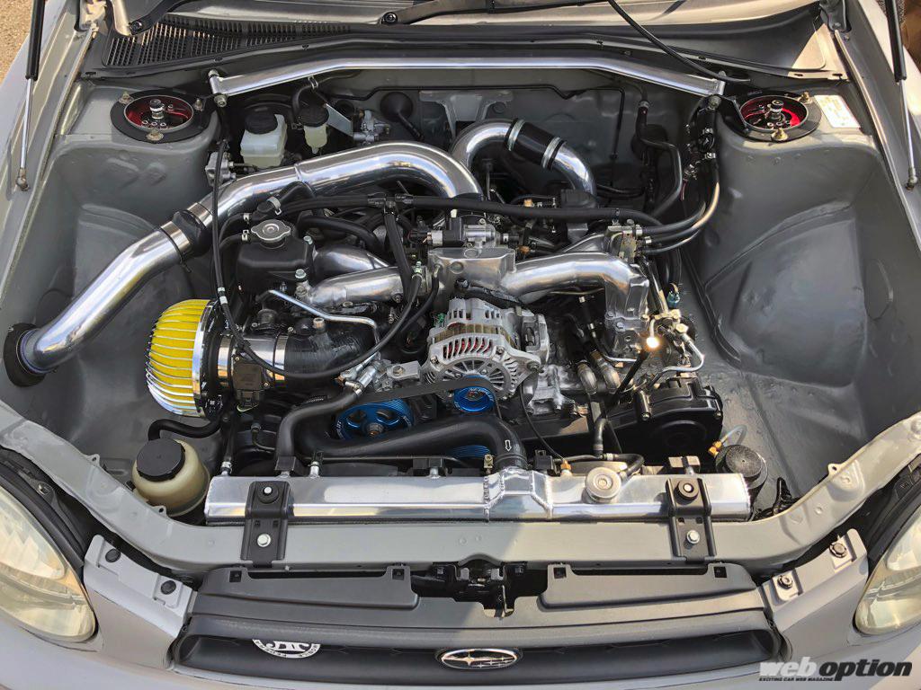 エンジンは一度ブローして載せ換えられているが、普通に考えたらGDBのEJ207ユニットを選択しそうなものだが、WADAさんはあえてGDAのEJ205ユニットを再搭載。「GDAのEJってハイコンプだから加速が良いし、そこまでパワーは要らないと思って」とのこと。