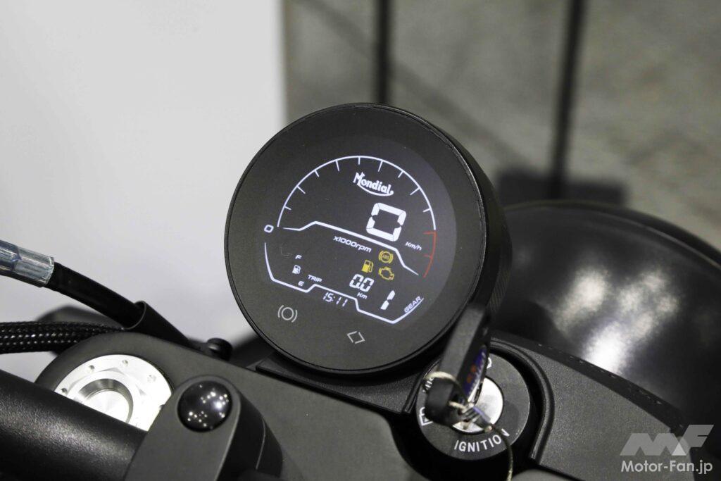 もう一台はすでに日本国内販売もされているネイキッドモデル、SPARTAN125の兄貴分となるSPARTAN250。クラシカルでオーソドックスなスタイルのボディに、空冷4ストローク単気筒2バルブの223ccユニットを搭載する。出力は12kW(16.3ps)と控えめながら、バイク初心者からベテランライダーまで、扱いやすく快適なライディングを楽しむことができる。ブレーキは前後ともにディスクを採用し、メーターはコンパクトな丸型のフルカラー液晶タイプで、さまざまな情報が見やすいのも特徴だ。
