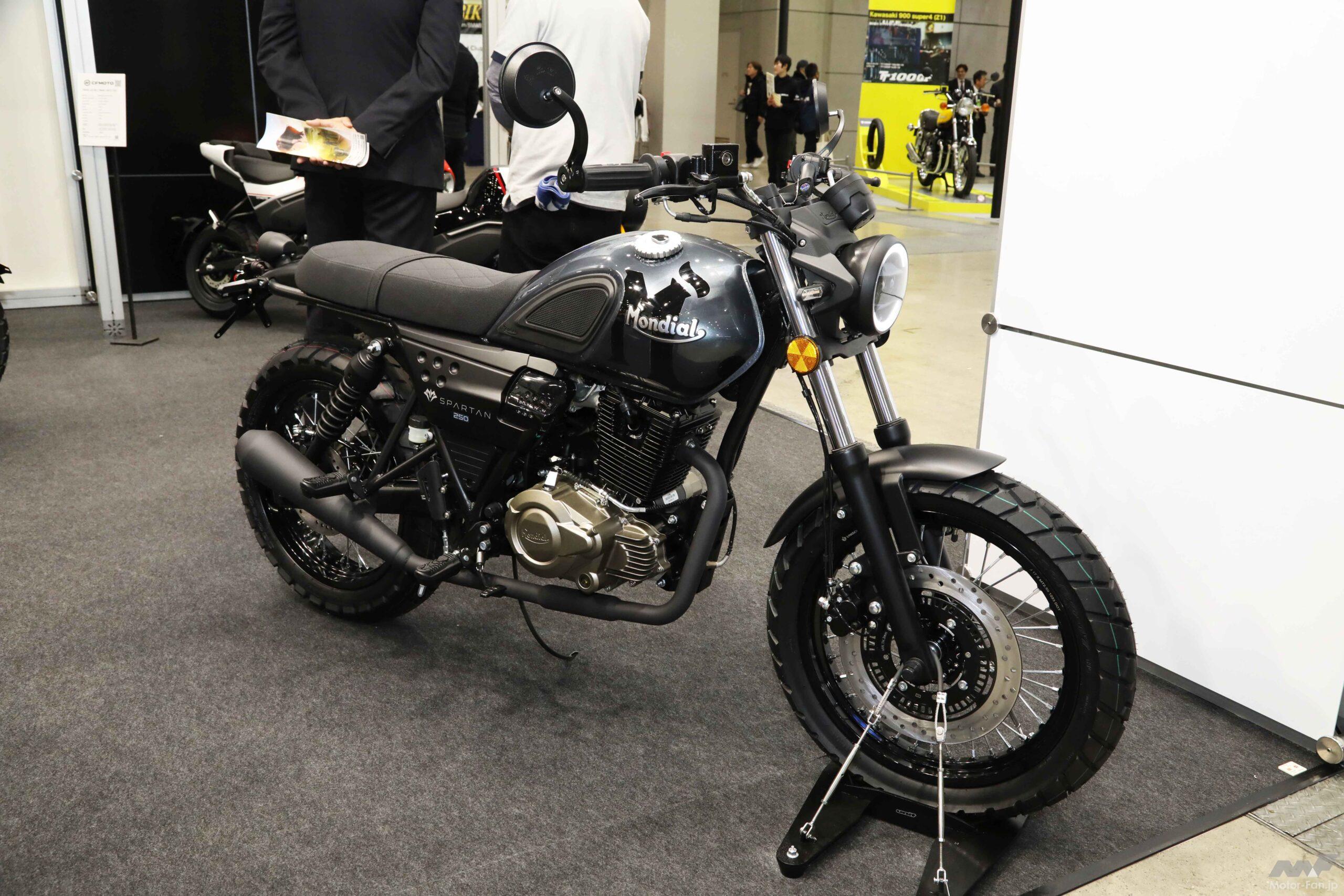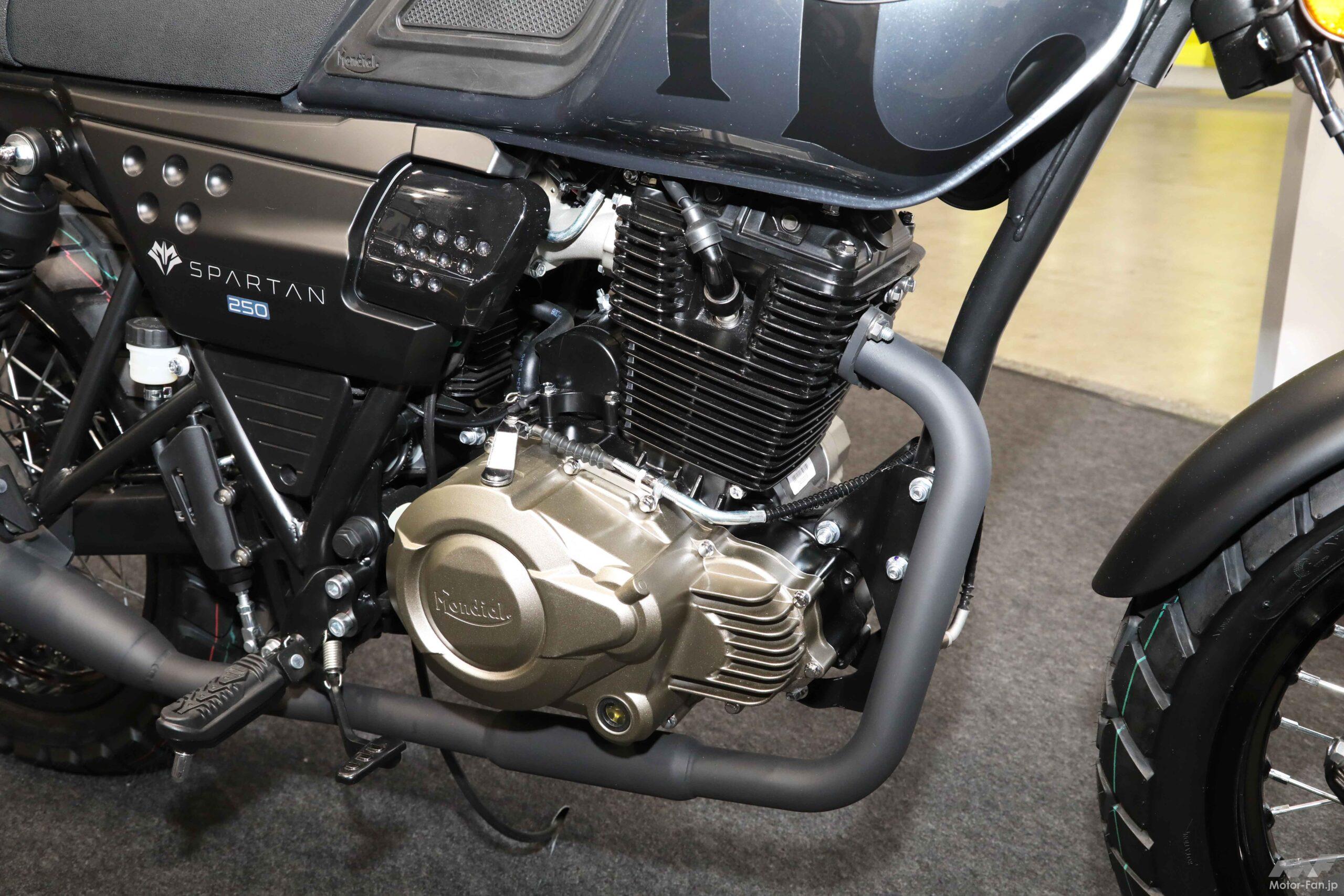 もう一台はすでに日本国内販売もされているネイキッドモデル、SPARTAN125の兄貴分となるSPARTAN250。クラシカルでオーソドックスなスタイルのボディに、空冷4ストローク単気筒2バルブの223ccユニットを搭載する。出力は12kW(16.3ps)と控えめながら、バイク初心者からベテランライダーまで、扱いやすく快適なライディングを楽しむことができる。ブレーキは前後ともにディスクを採用し、メーターはコンパクトな丸型のフルカラー液晶タイプで、さまざまな情報が見やすいのも特徴だ。