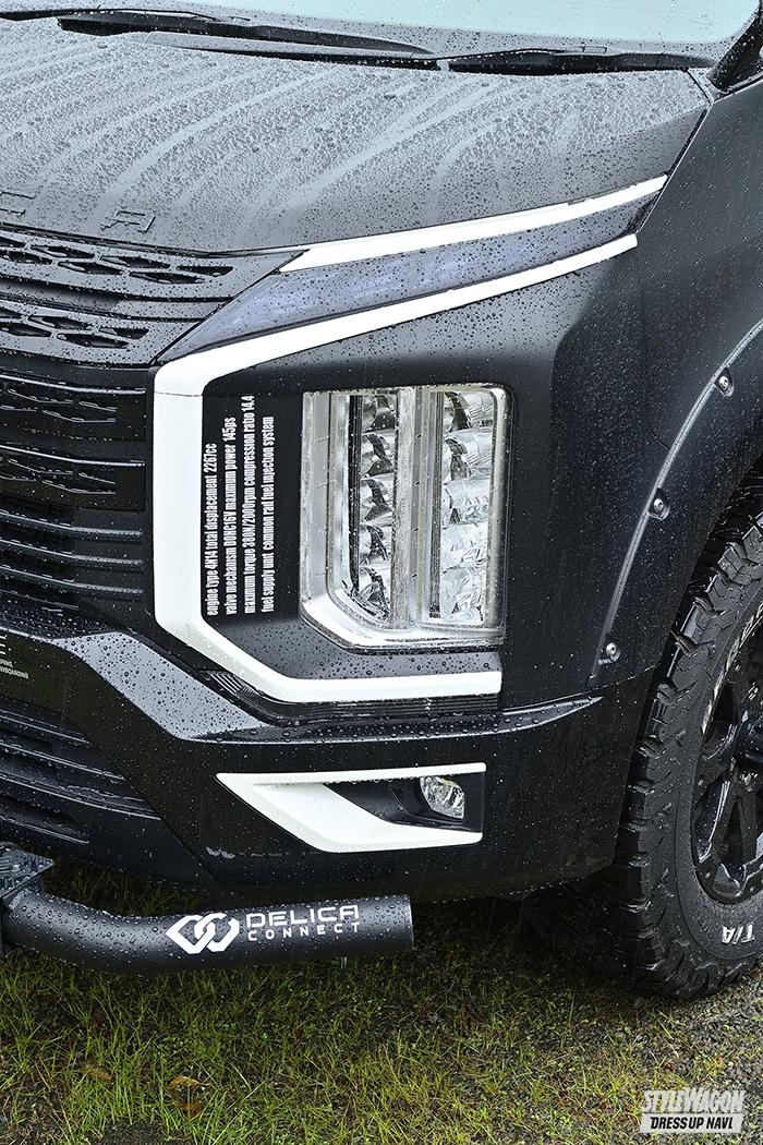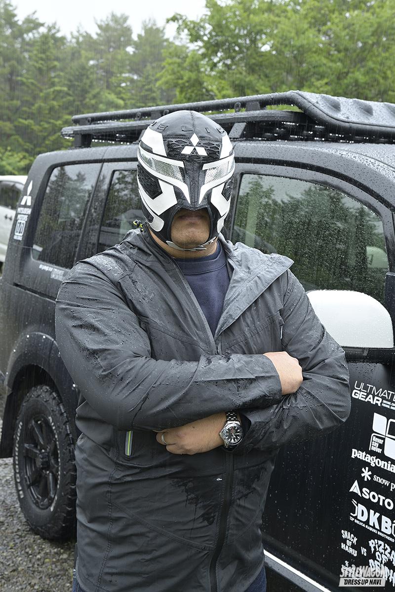 謎のデリカマスクマンとして登場したmatte_d5さん。なぜマスクマンなのかというと、愛車デリカのフェイスマスクをイメージして「マスクは本物仕様で5万円ほどで作りました」から。ちなみにアイライン、ヘッドライトガーニッシュを三菱のスコーティアホワイトにペイントし、歌舞伎の隈取りのようなフェイスを演出する「DKB(デリカカブキブラザーズ)」の2号機として知られる1台なのだ。3年ほど前に、10年24万km乗った前期から乗り換え。マットペイント&ホイールの状態で購入。その後ボンネット、グリルなどDIYでラプターライナー塗装を施す。さらにフロントのマドリス製フロントガードにもフォグランプをDIYで取り付けた。「もうほぼほぼ完成。あとはステッカーの貼り替えとか極力シンプルに!」。