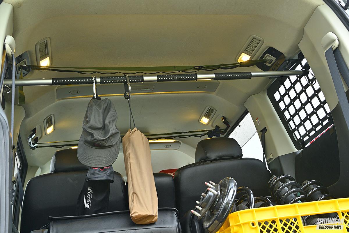 ホイール:ソリッドレーシング・iメタル(16×8.0J) タイヤ:BFグッドリッチ・マッドテレーンT/A KM3(245/75) エクステリア:TGSフェンダー、LEDテール、ワンオフルーフキャリア インテリア:レカロシート サスペンション:5インチアップ
