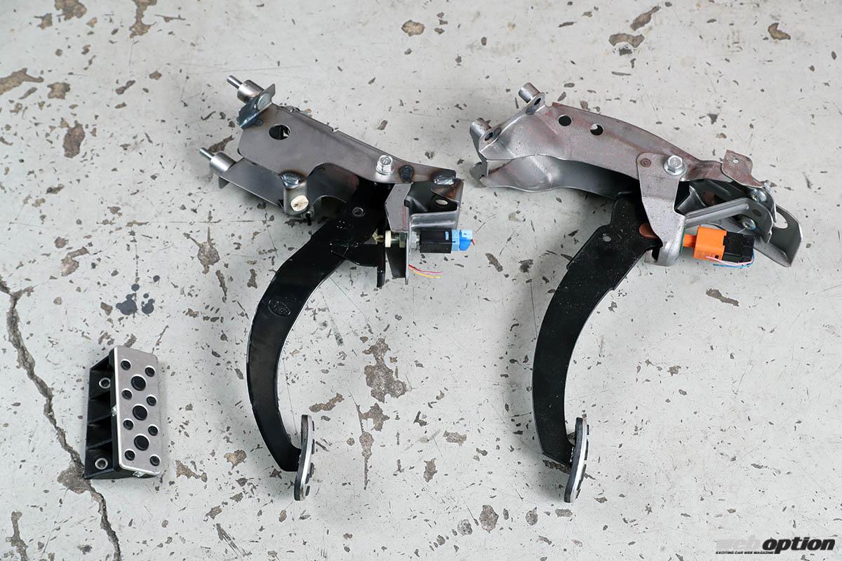 6速MT本体は中古でも手に入りやすいし、クラッチペダルやブレーキなども、解体業者がMT載せ換えキットとして販売しているほど。かなりの部分がボルトオンに近い状態だが、パーツを取り付けただけではセルモーターが回らず、不要になったATクーラーの配管加工やABSユニットの変更、さらにはECUのプログラム変更…と、パッと挙げただけでもボルトオンというわけにはいかない部分が多数あるのだ。