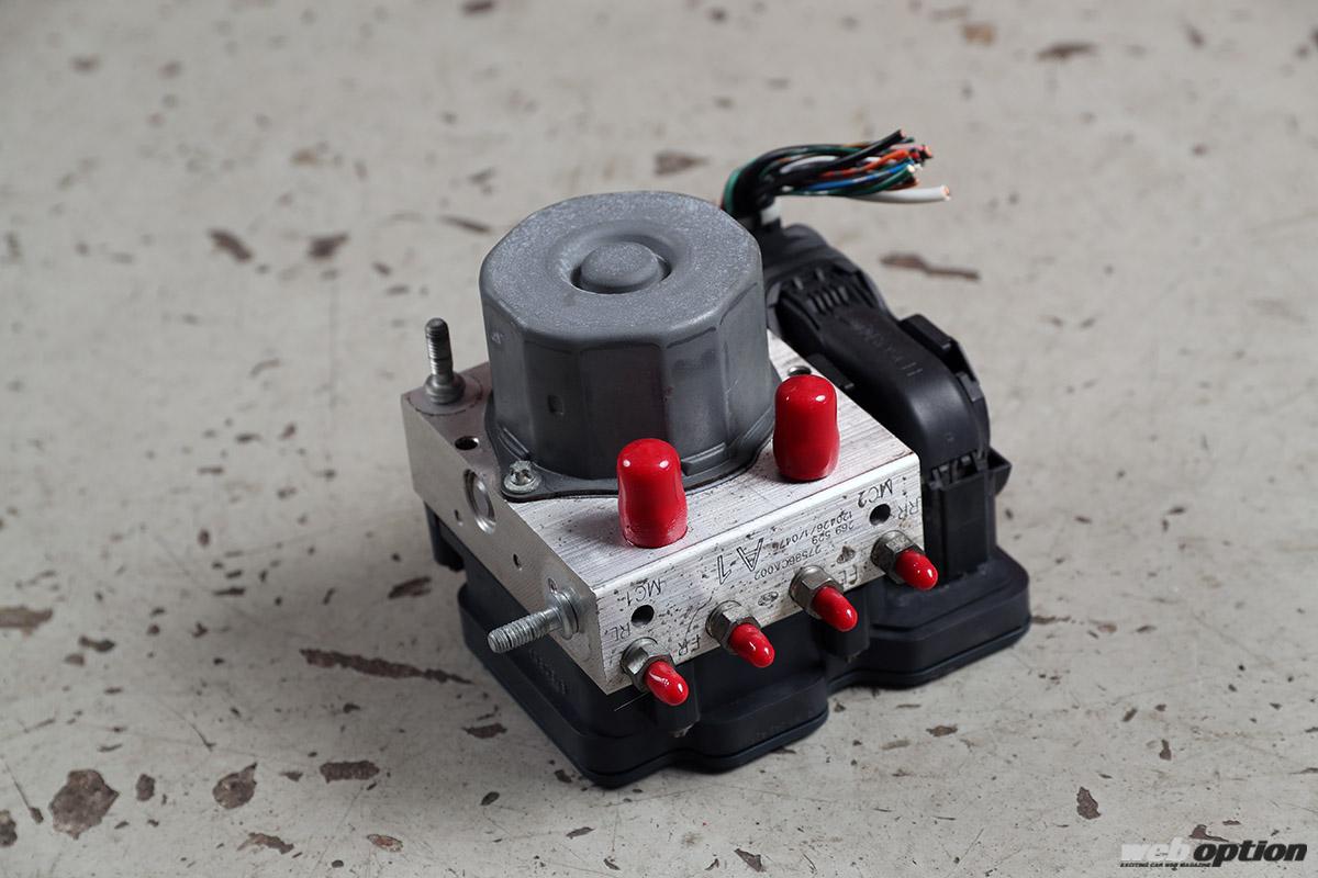 86/BRZの場合、ABSユニットも交換する必要がある。このABSユニットはMT用もAT用も同じ品番なのだが、ECUと初めて通信をした瞬間に、AT用かMT用かのデータが書き込まれるため、MT載せ換えの場合は新品のABSユニットに交換が必要なのだ。