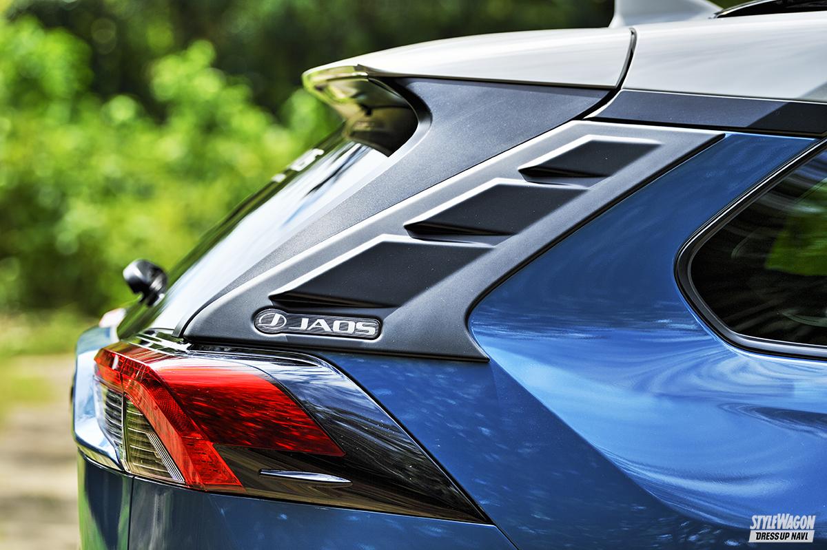 例えばABS製のフェンダーガーニッシュはボルトオン装着ながらもダミーボルト付きだからリアリティが断然。片側10㎜ワイド以内というタイトなサイズでも、しっかりとスパルタンさを盛り上げてくれる。ビジュアルアピール度の高いマッドガードは汎用品だが、車種別取り付けキットが設定されているため取り付けもパーフェクト。ジャオスのロゴとアルミプレートがオシャレで、オフローダー感をダイレクトに引き上げ可能だ。
