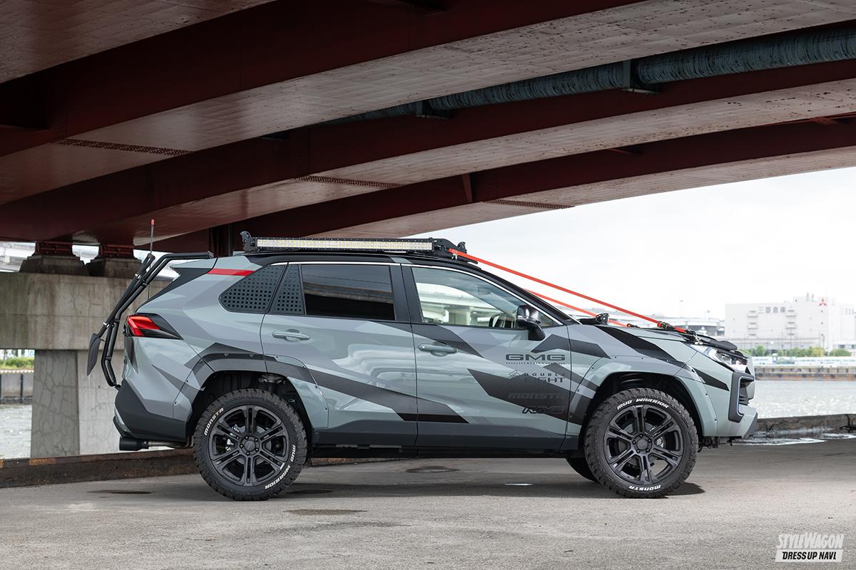 ランクル300や150プラド、ハイラックスなど4×4やラグジュアリーSUVのカスタムコンプリートカーを取り扱う名門ショップ、GMG。ミドルクラスSUVとして人気のRAV4も積極的に手掛けていて、各種コンプリートモデルを用意。その一方でオリジナルカスタムにも精通するプロショップとしてお馴染みだ。