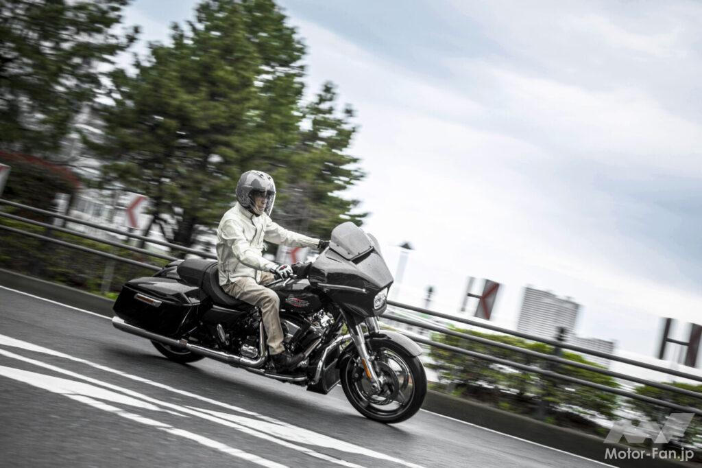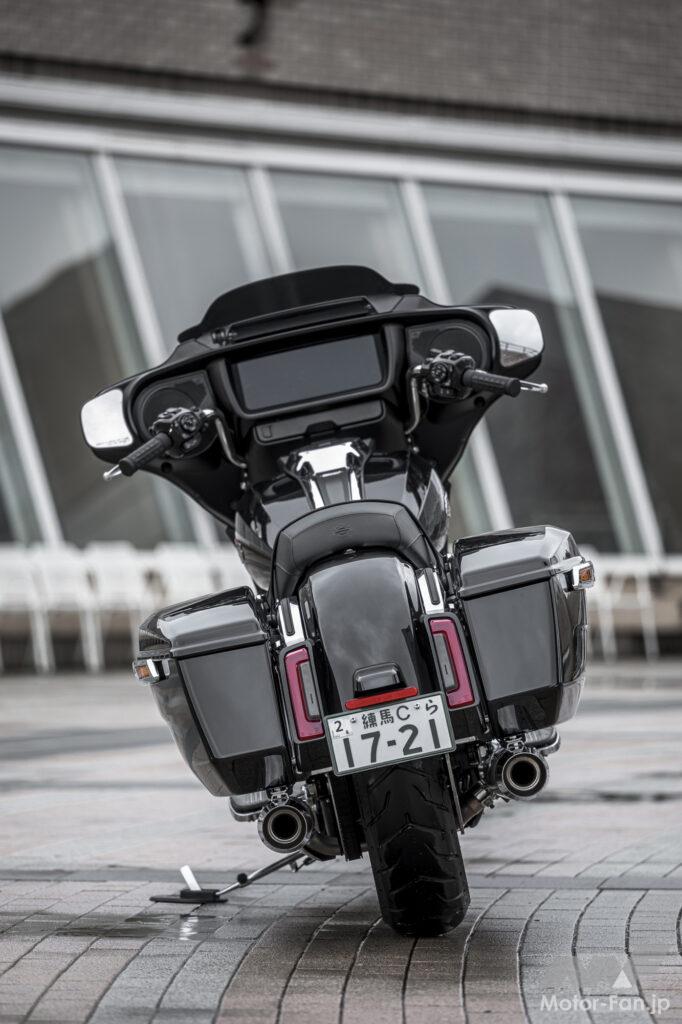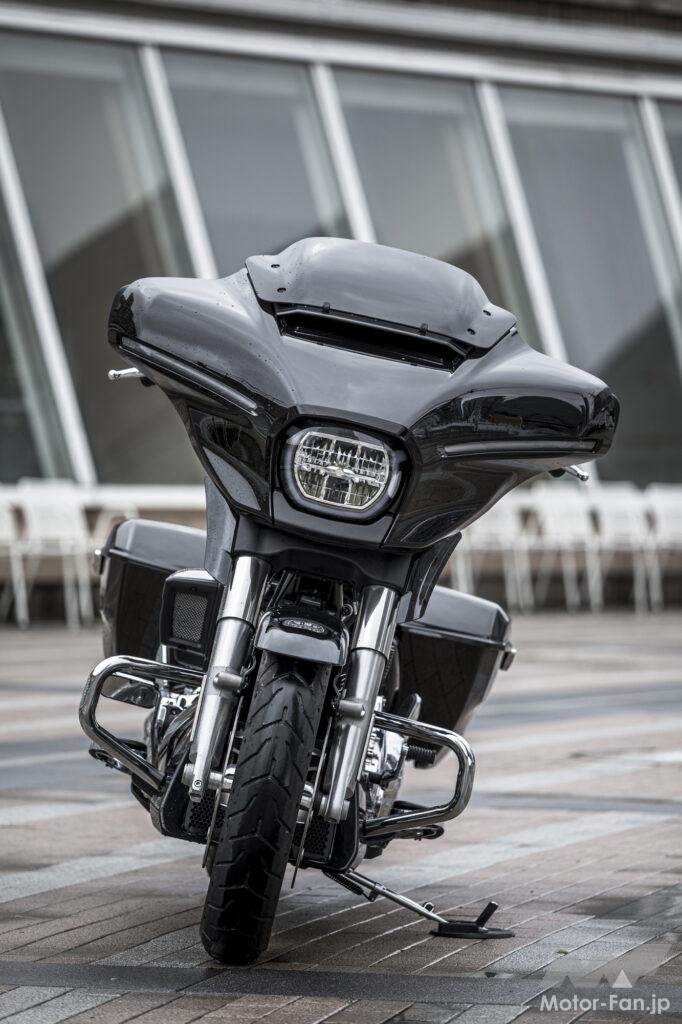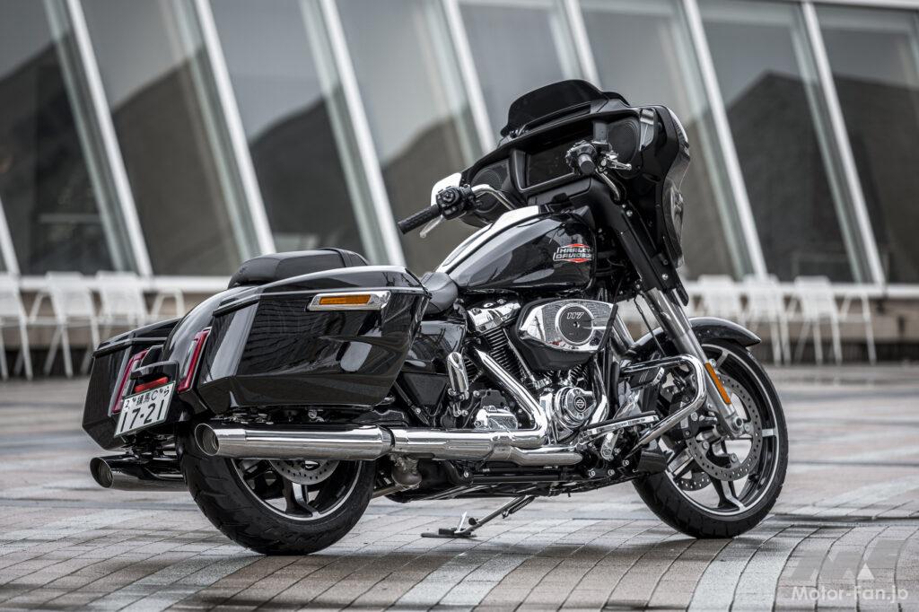 ハーレーダビッドソンのラインナップは6種のカテゴリーに分類され、ストリートグライドは「グランドアメリカンツーリング」に属している。日本国内市場で同カテゴリーの販売実績は15%程度と言うが、本国アメリカの市場では約半数の人気を占めているそう。