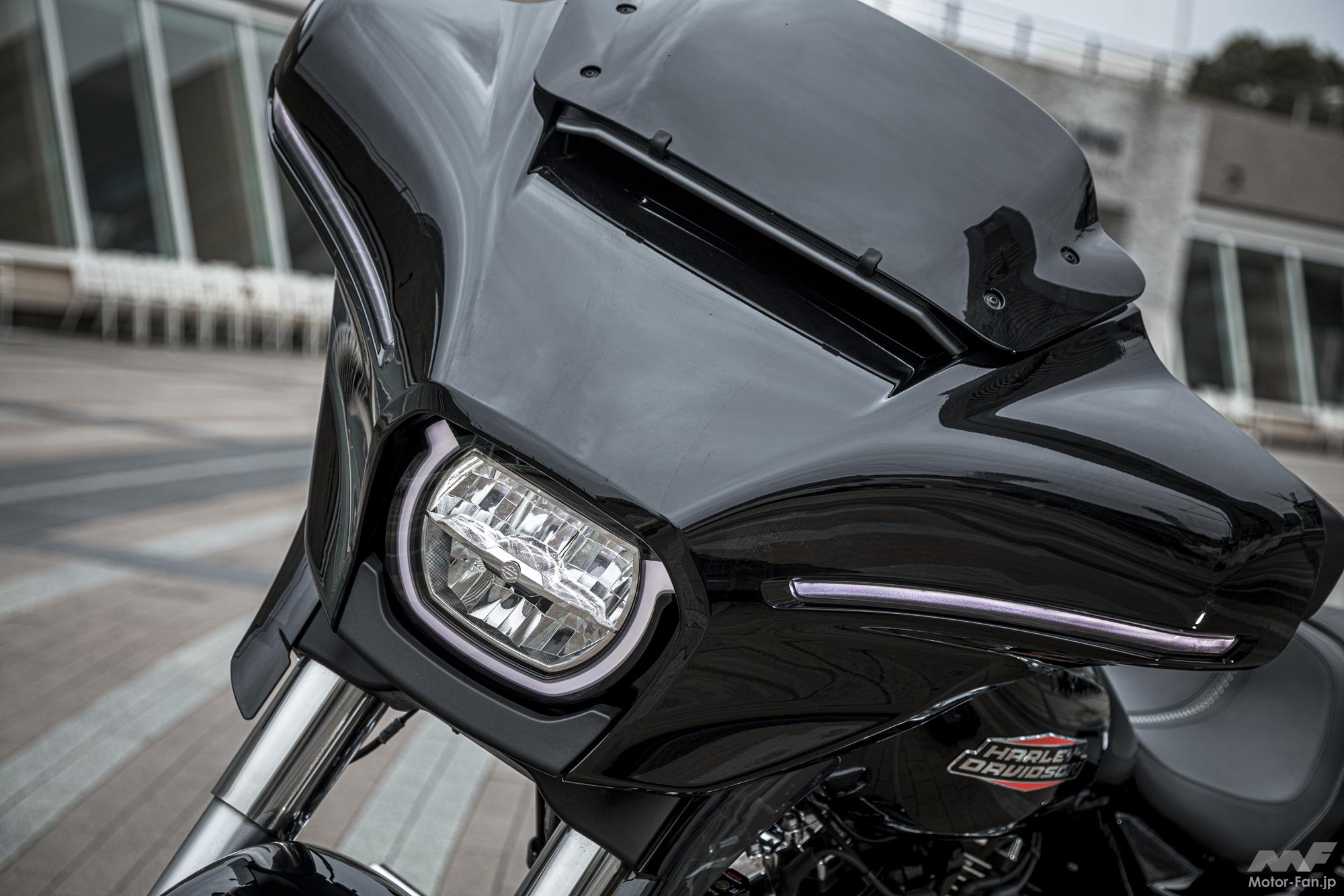 ハーレーダビッドソンのラインナップは6種のカテゴリーに分類され、ストリートグライドは「グランドアメリカンツーリング」に属している。日本国内市場で同カテゴリーの販売実績は15%程度と言うが、本国アメリカの市場では約半数の人気を占めているそう。