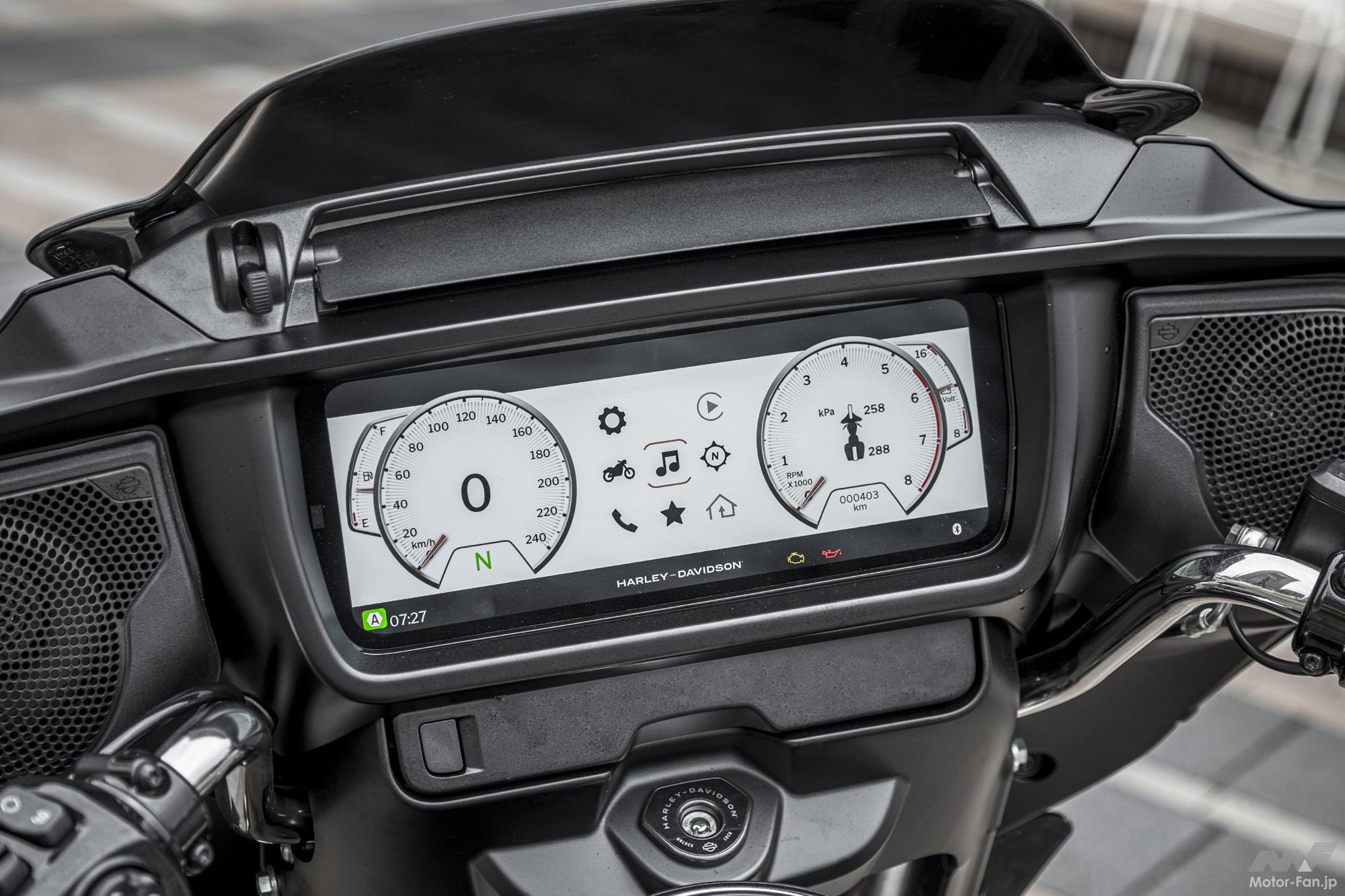 パフォーマンスもしっかり向上している。横置きの45度Vツインエンジンは、ピッチが細かく重ねられた冷却フィンが美しい、いかにもハーレーダビッドソンを象徴する堂々と立派なデザイン。そんなMilwaukee-Eight™117エンジンもアップデートされている。