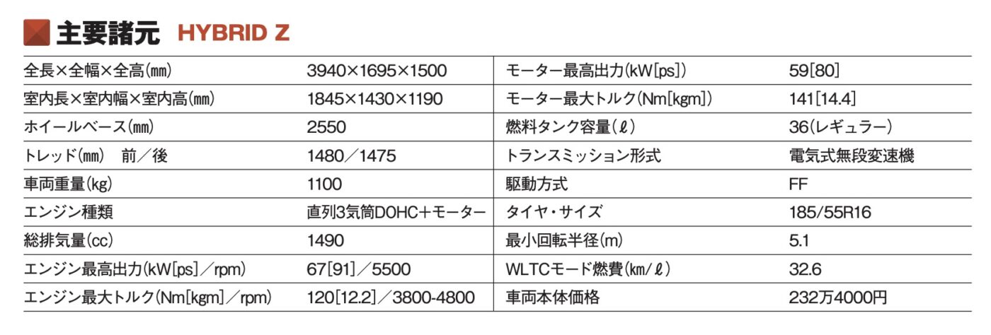 月間登録台数 6071台(21年11月〜22年4月平均値) 現行型発表 20年2月(一部改良 21年5月) WLTCモード燃費 36.0km/l※「HYBRID X」のFF車