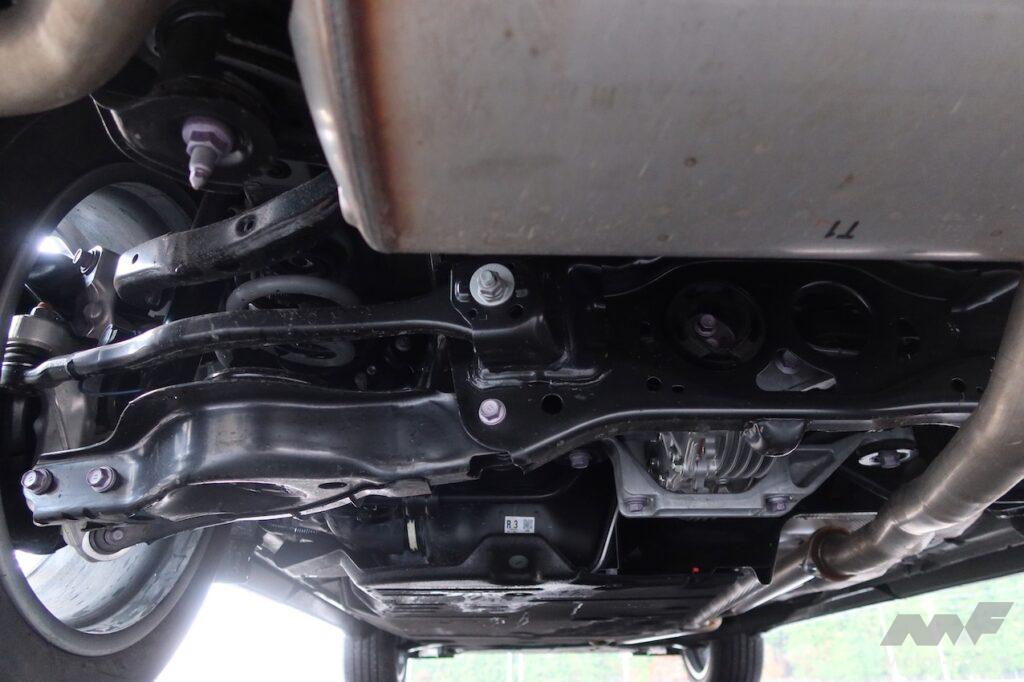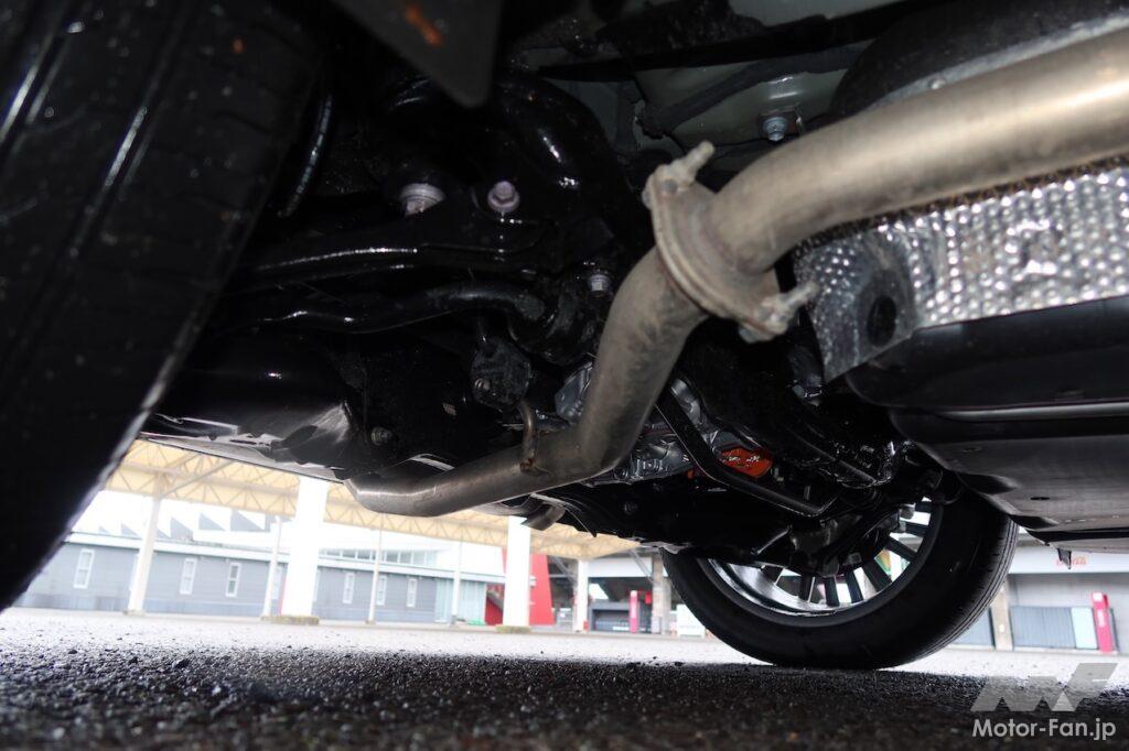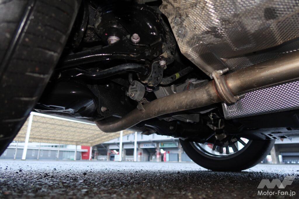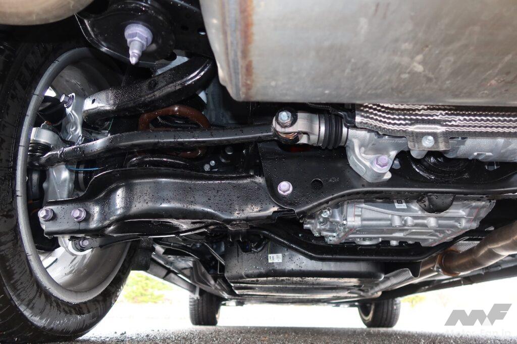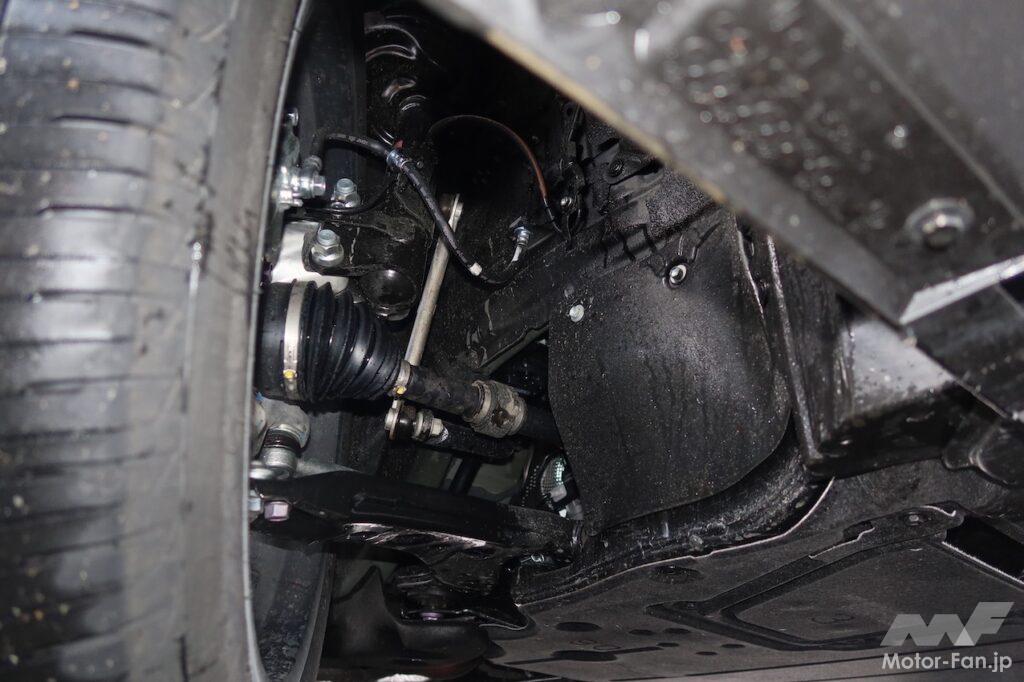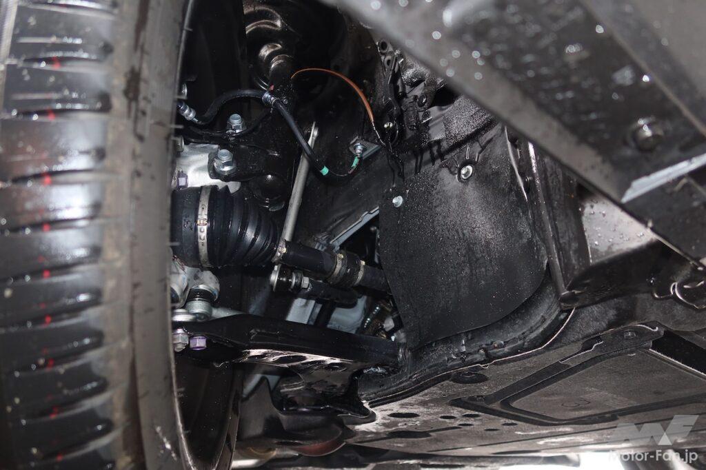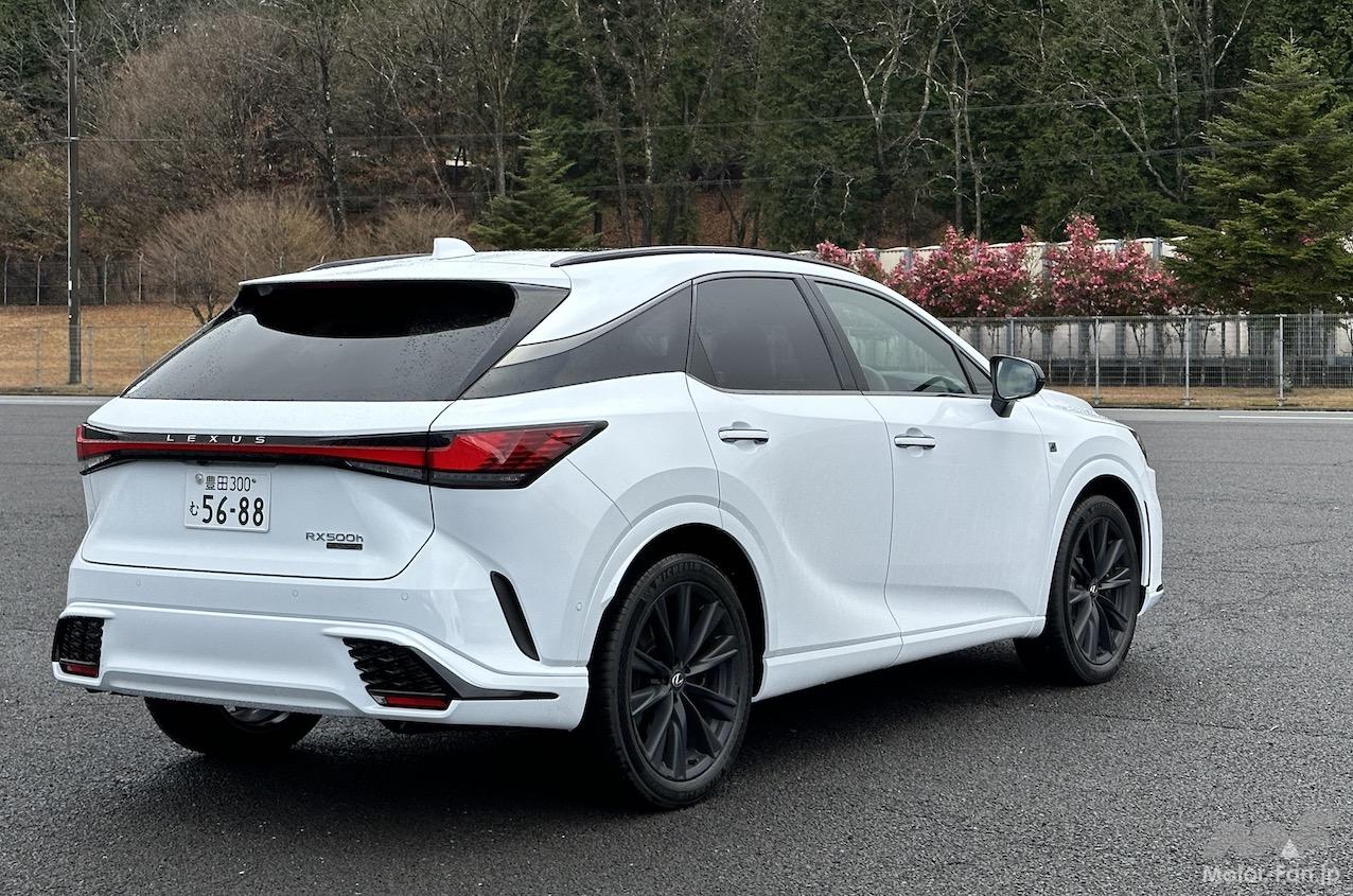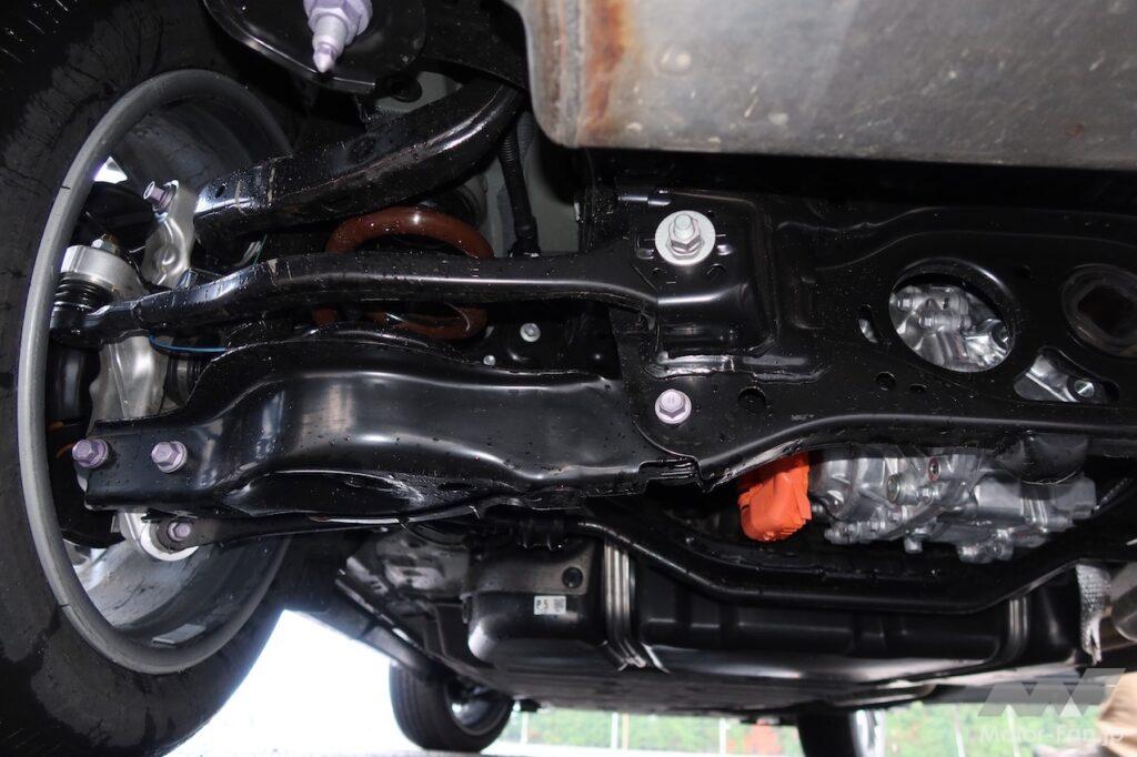 剛性を上げたのはしっかりした乗り心地と操安性確保のためだが、RX500hのようにリヤに高出力・高トルクのモーター(最高出力76kW、最大トルク169Nm)を搭載することも、剛性アップを図った背景にある。大きなトルクを確実に受け止めるためだ。「リヤのしっかり感がないと物足りなく感じるので、そこを重点的に鍛え上げ、しっかりとしたリヤサスペンションを新設しました」と開発に携わった技術者は説明する。