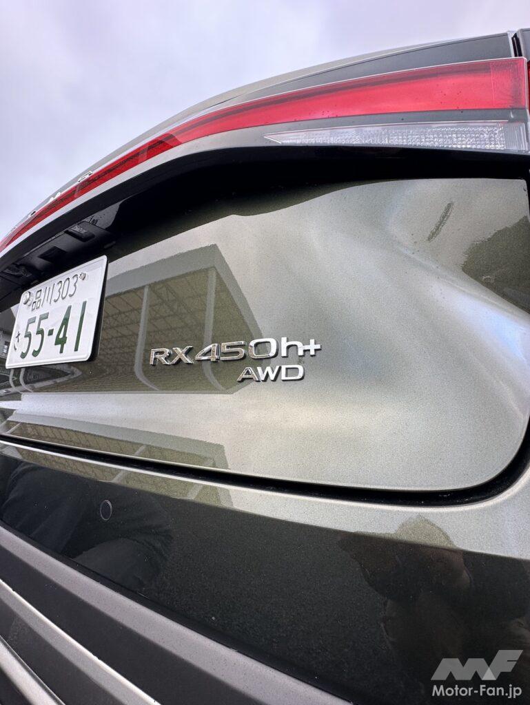 RX450h+はRX初のプラグインハイブリッド(PHEV)モデルだ。「2.5L PHEV E-Four」と呼ぶシステムで、やはり、クラウン・クロスオーバーに設定のある「2.5Lハイブリッド車」と同じシステム構成。フロントにより強力なモーターを搭載しているのがRX版PHEVの特徴だ。リチウムイオンバッテリーの容量は18.1kWhで、EV走行可能距離は86kmを実現している。
