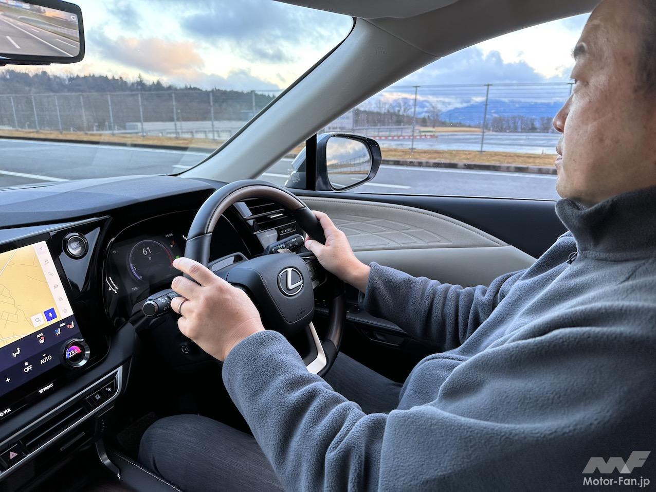 最後にRX350に乗ったが、RX500hやRX450h+から価値をそぎ落としたグレードがRX350でないことがよくわかった。位置づけは逆で、RX350をベースに価値を付加していったのがRX450h+であり、RX500hだ。RX350はラグジュアリークロスオーバーSUVとして、充分に魅力的なクルマに仕上がっている。ボディ骨格とサスペンションの着力点剛性を高めたのが効いているのだろう(締結軸力も上げている)。素性を徹底的に鍛え上げたのが効いており、ステアリングを切り込んだ際にクルマが向きを変える動きは応答が良く、かつ穏やか。路面からの入力の受け止め方は上質で、低級な微振動も突き上げるような強いショックもない。