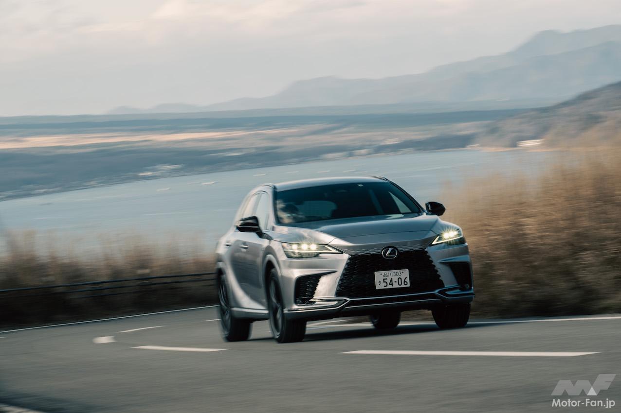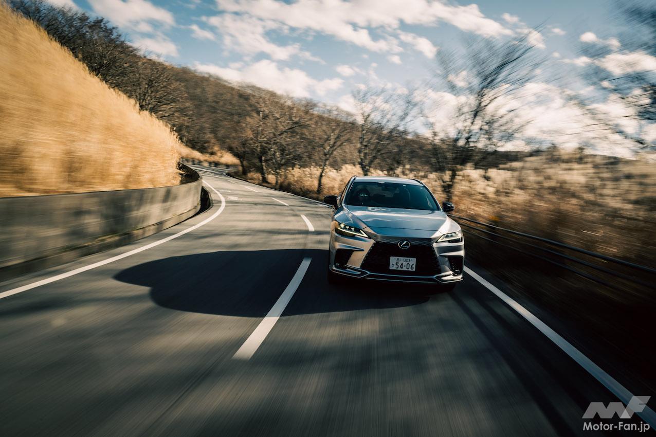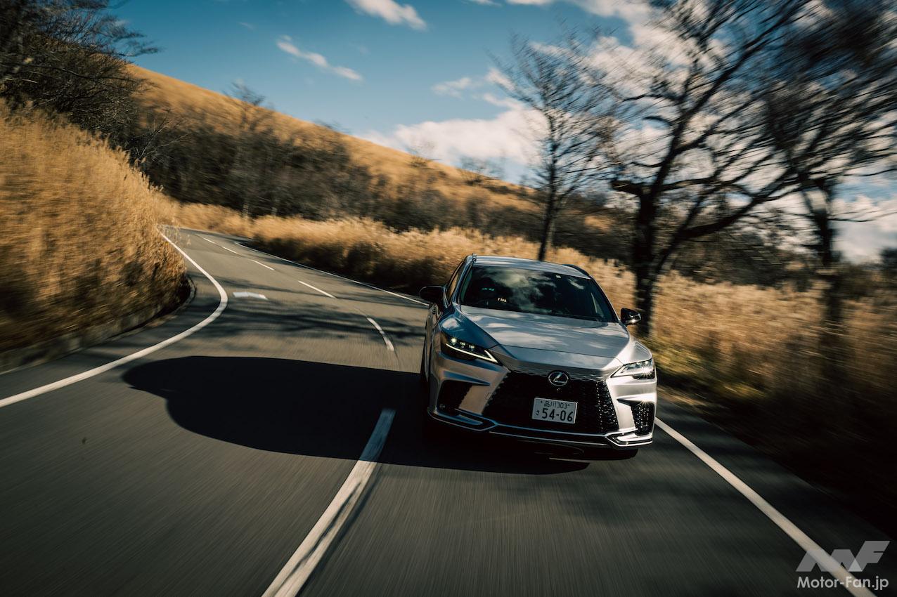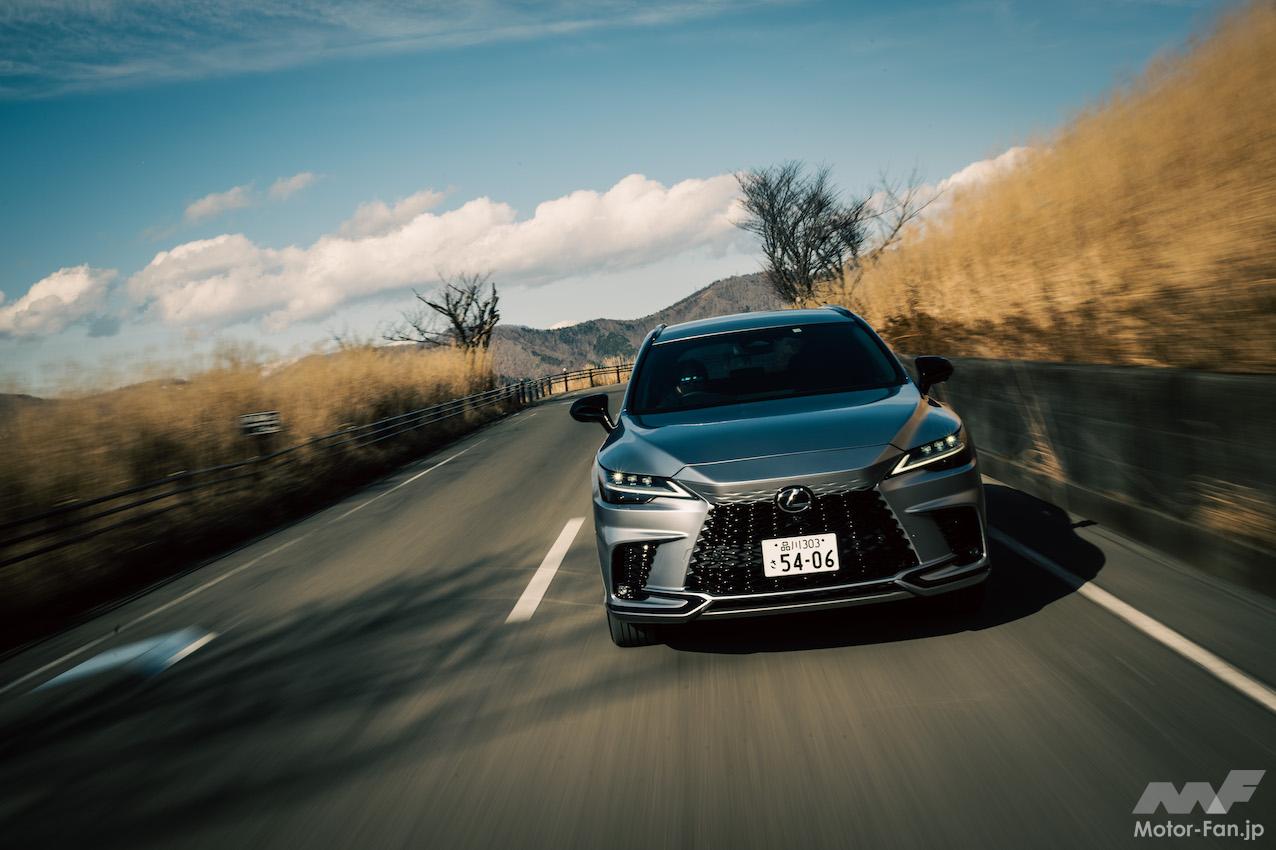 RX500h、RX450h+、RX350の順に試乗した。特定のグレードが図抜けて印象に残り、「おすすめはコレ!」と言えればいいのだが、言えないのが本音だ。それぞれに特徴があり、良さがある。RX500hは「パフォーマンスを追求した」とメーカー側が自負するだけあり、2100kgの車両重量をものともせず、身軽に動く。有り余るパワーで強引に大柄な車体を振り回すのではなく、振る舞いがスマートだ。アクセルペダルを強く踏み込まなくても充分な力を出してくれるので、エンジンの回転を高めなくても思いどおりを維持できるし、発進や追い越しなのでエンジンの回転を高めるような走りをしても騒々しくない。