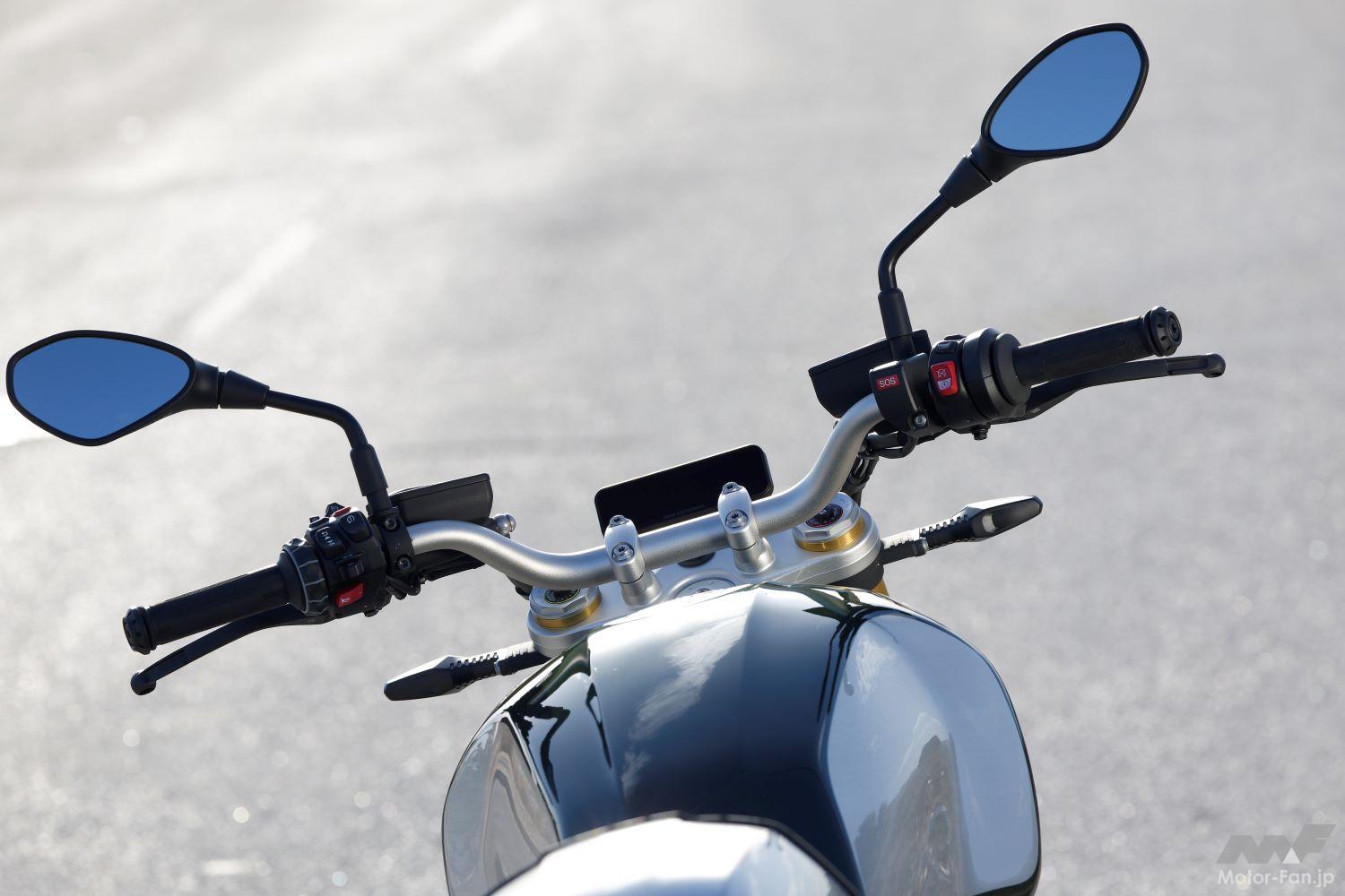 ただ雰囲気に浸りたいだけの味わい深いテイスト系マシンではなく、しっかりとスポーティに走らせることも許容する。左右に張り出したエンジンはバンク角を抑制しそうにも思われるが、サーキットでも走らせない限り不満を覚えることはないだろう。