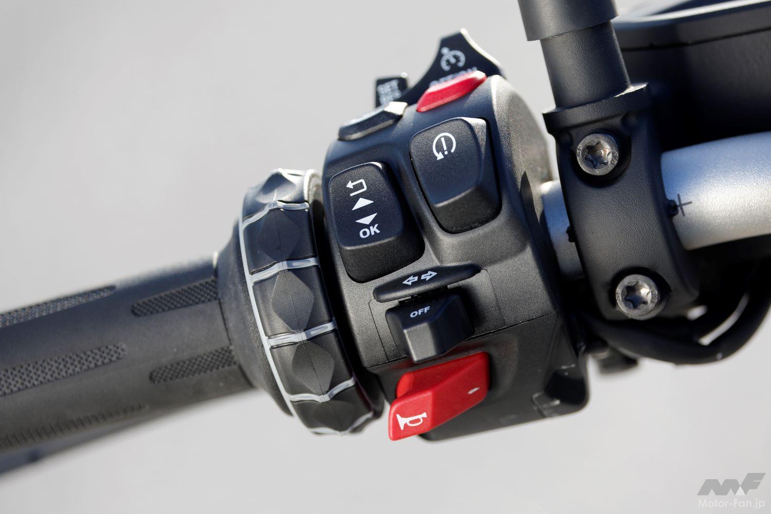 しかしあらたにアップ&ダウン対応のオートシフターが装着されたことにより、ツーリング時の快適性や疲労軽減はもちろん、スポーティに走らせる際のリズミカルな走りにも好都合である。